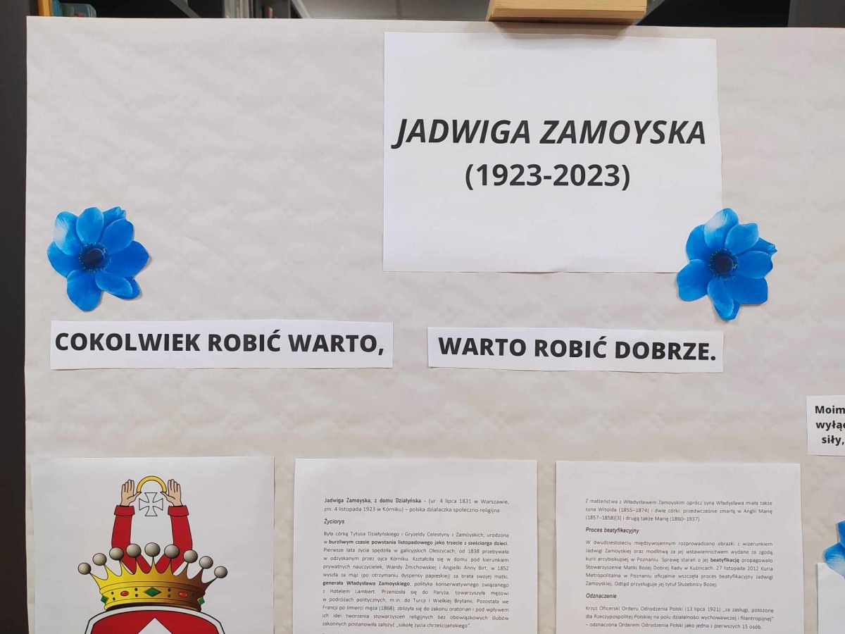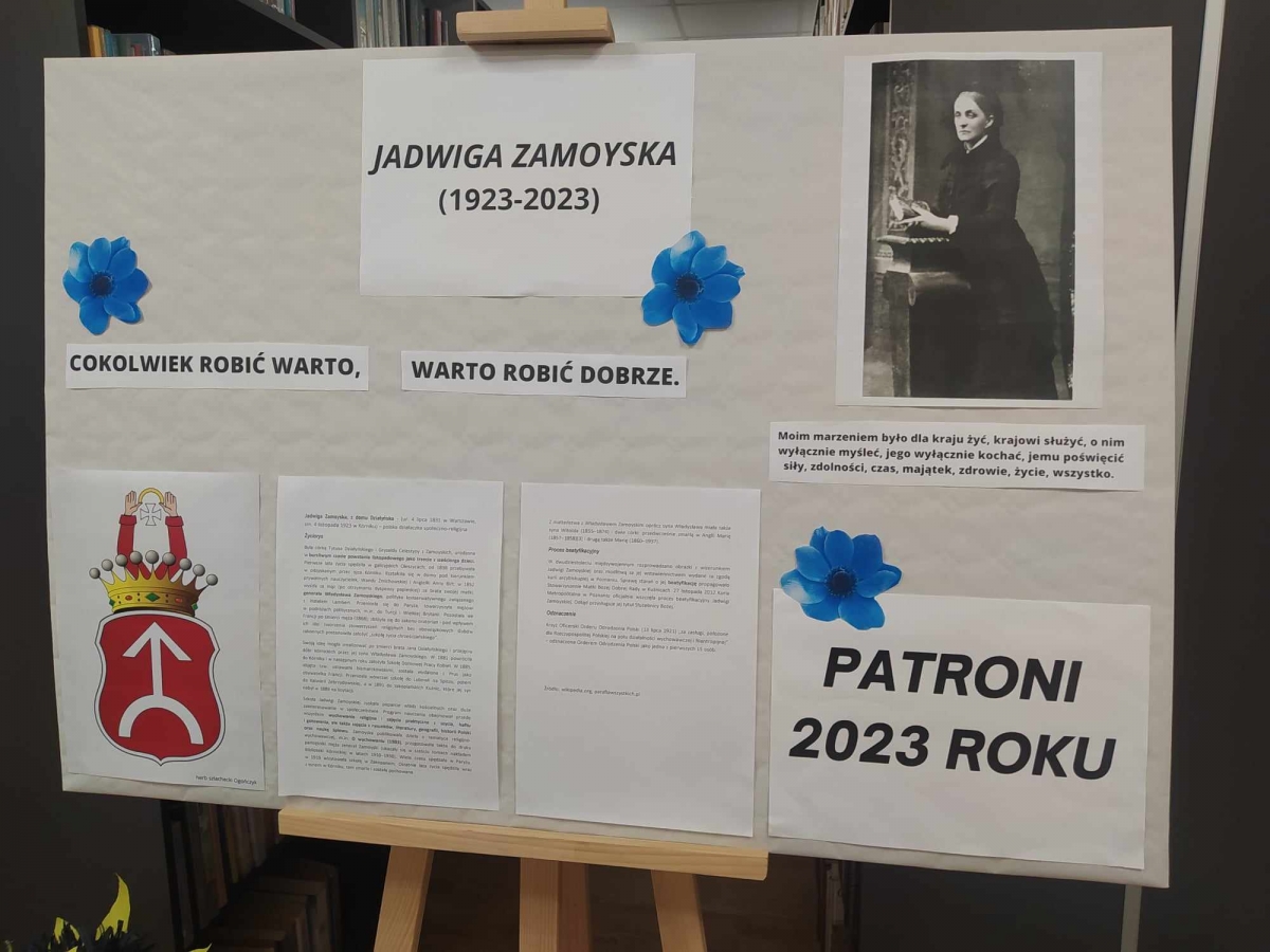 W ramach cyklu Patroni 2023 roku przypominamy postać Jadwigi Zamoyskiej – polskiej działaczki społeczno-religinej, patriotki, założyżycielki pierwszej w Polsce szkoły gospodarstwa domowego, prekursorki kobiecego przywódzctwa, ur. 4 lipca 1831 w Warszawie, zm. 4 listopada 1923 w Kórniku. Była żoną generała Władysława Zamoyskiego, konserwatywnego polityka związanego z działającym na emigracji Hotelem Lambert.