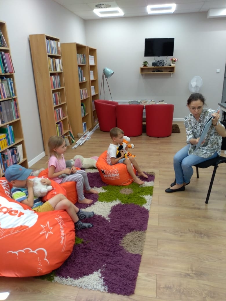 Podczas zajęć zostały przeczytane książki w tym: ,,Góra mądrości” autorstwa Mojo Graffi, ,,historia z pięknym przesłaniem o podążaniu za marzeniami, o tym, że każdy się czegoś boi oraz jak ważna jest w życiu przyjaźń”. Ponadto dzieci obejrzały bajkę o żółwiu Franklinie, opowiadającą o przezwyciężaniu przez niego trudności i lęków. Odnosząc się do kolejnego książkowego bohatera bibliotekarka Joanna Olejniczak przeczytała baśń pt. ,,Brzydkie Kaczątko”.