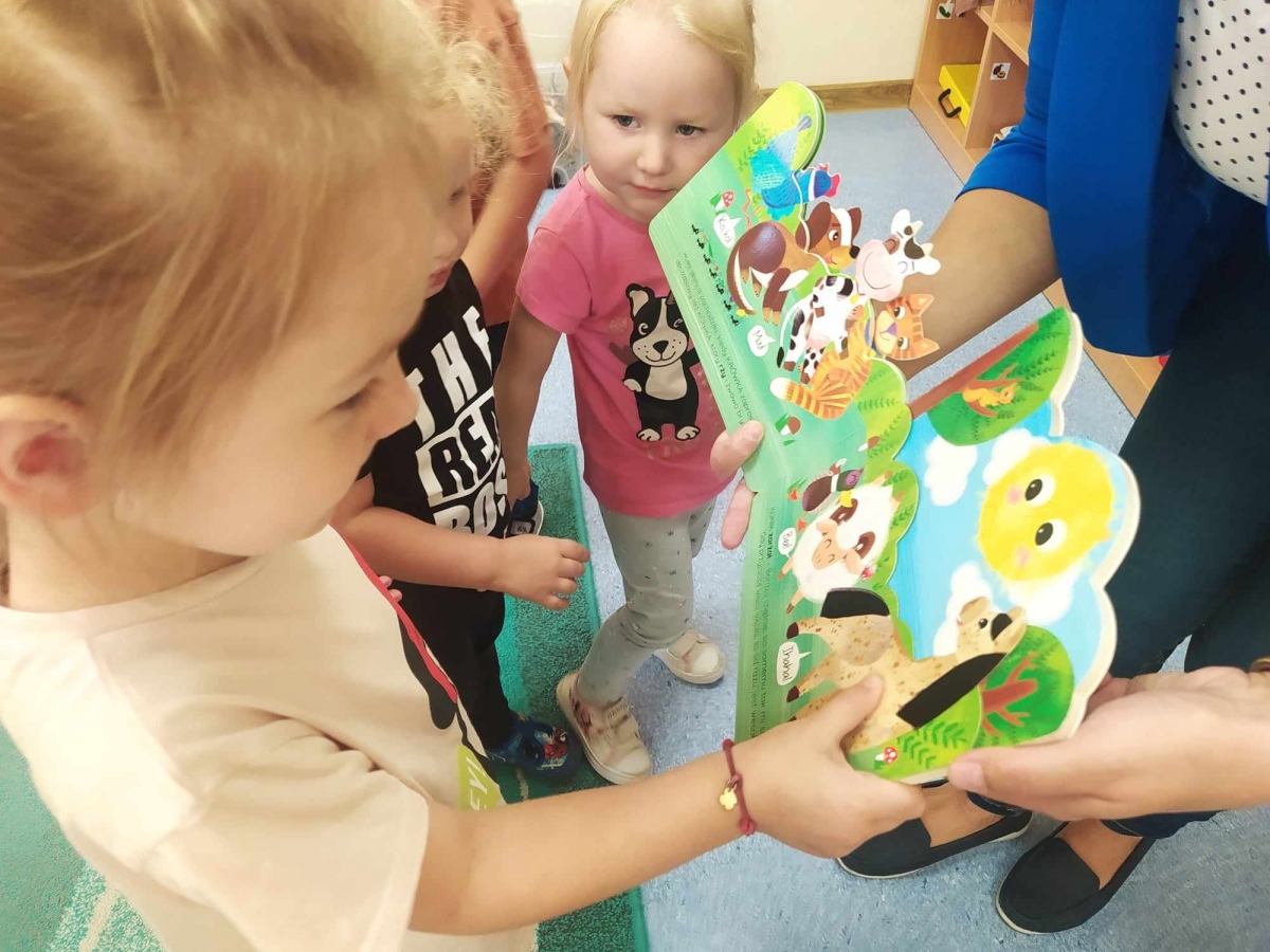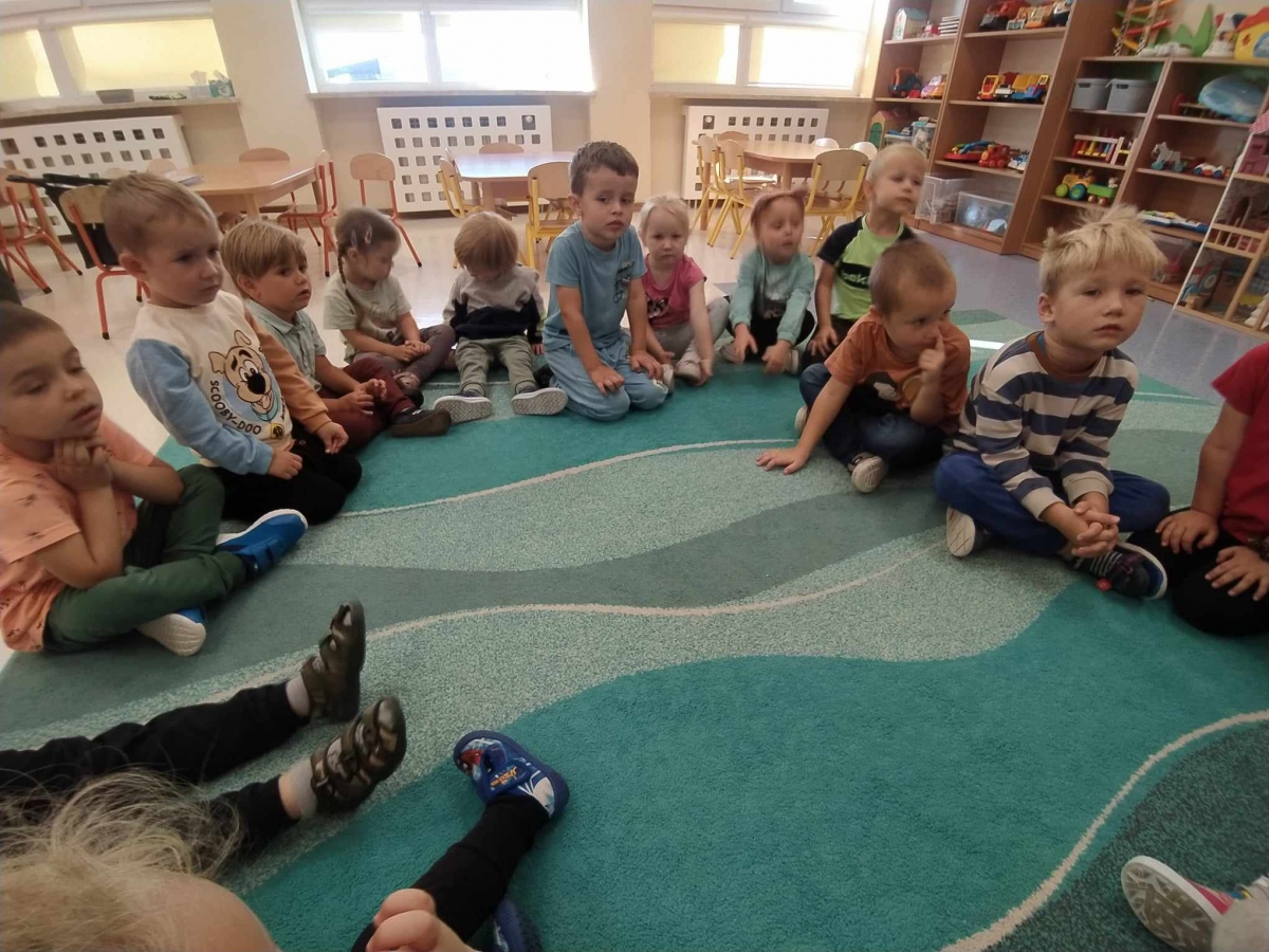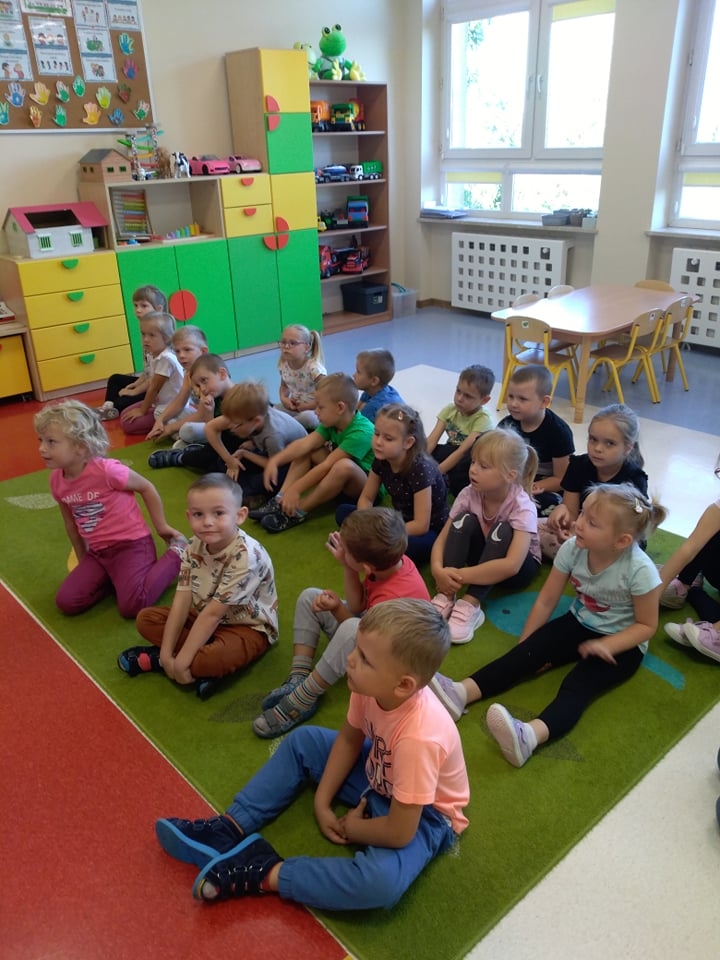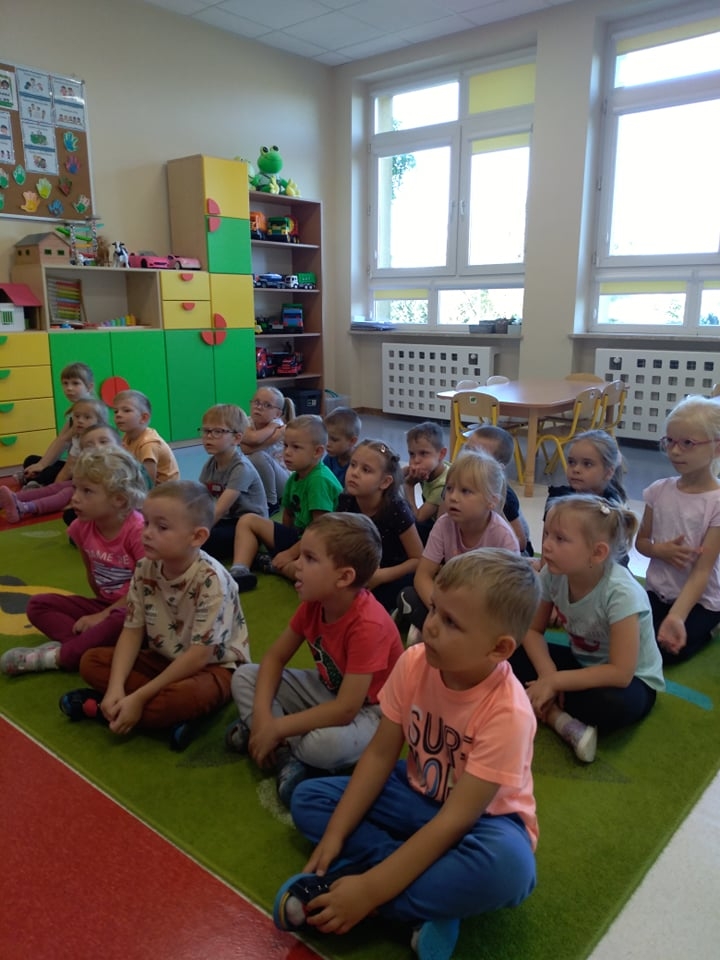 Przedszkolaki wysłuchały wybranych przez bibliotekarki opowieści. „Żabkom”- starszej grupie- zaprezentowana została legenda M. Orłonia pt. „Książę Popiel i myszy” z cyklu Baśnie polskie. „Rybki” wysłuchały historii jesiennej wiewiórki w bajce A. Hemming pt.”Złodziej liści” oraz dźwiękowej książeczki „Zwierzaczki z głośnej paczki”.