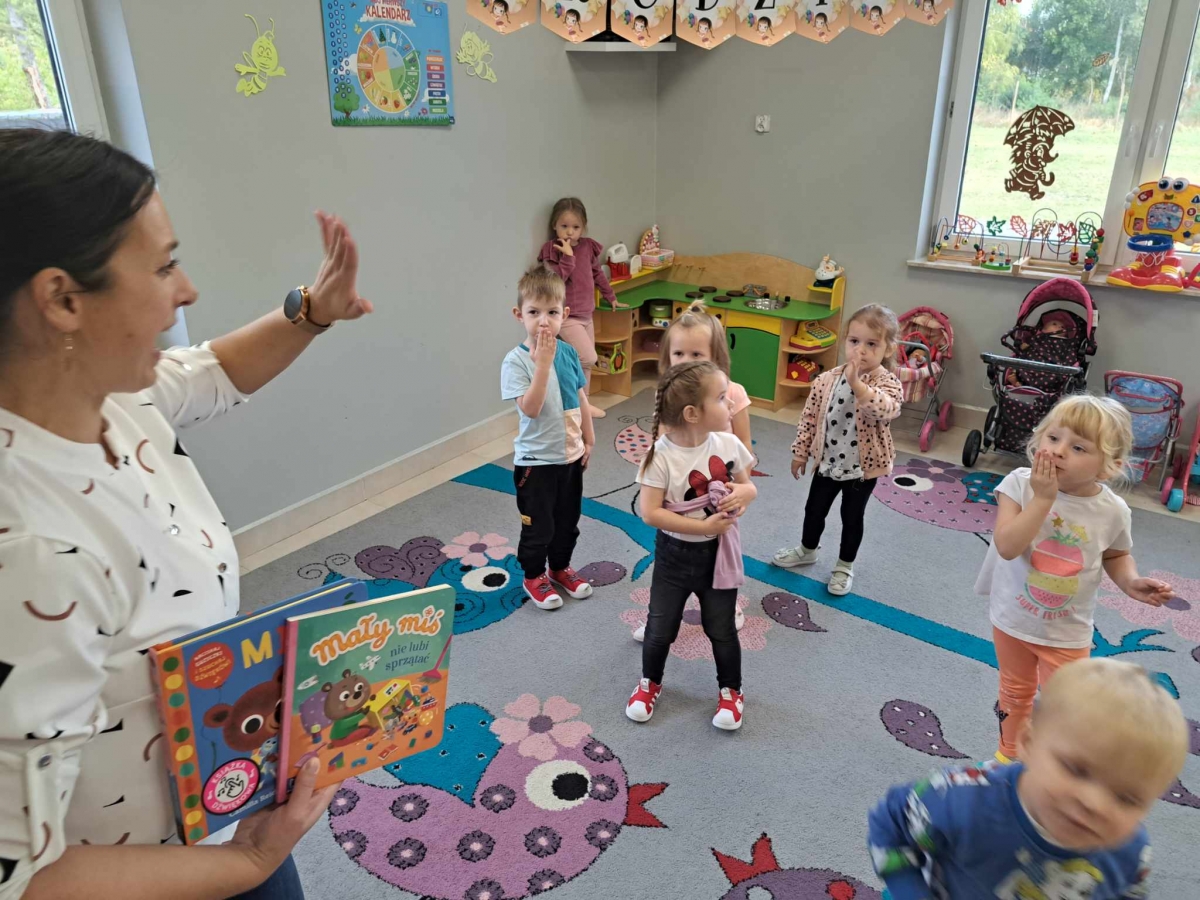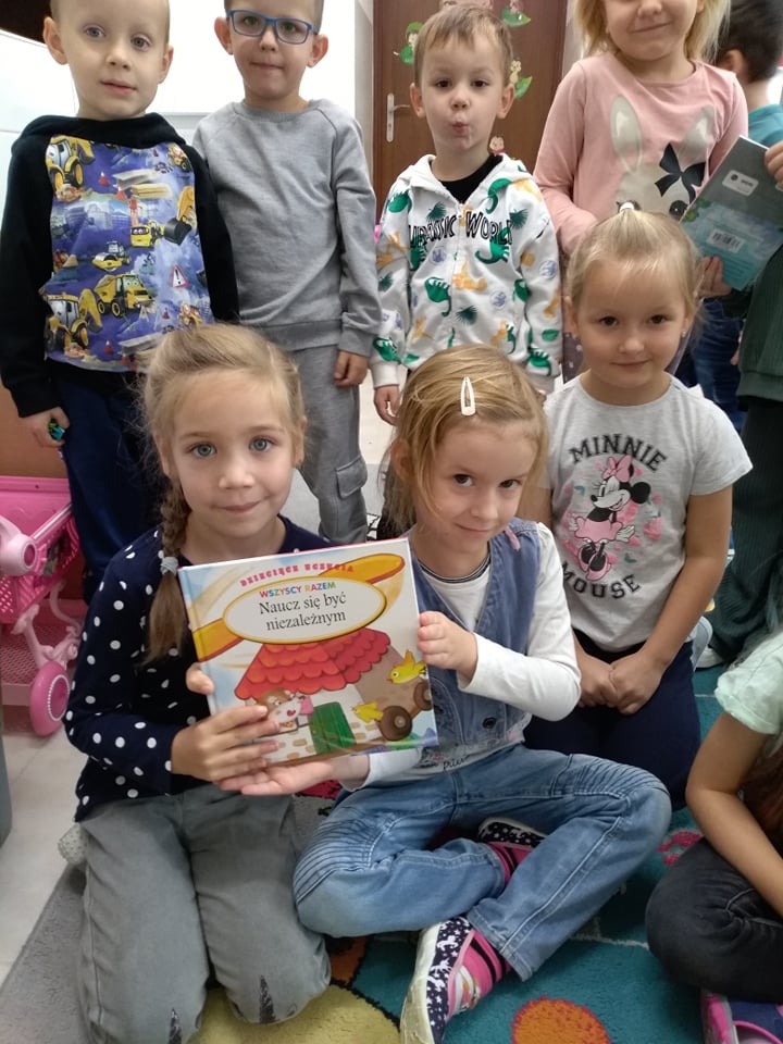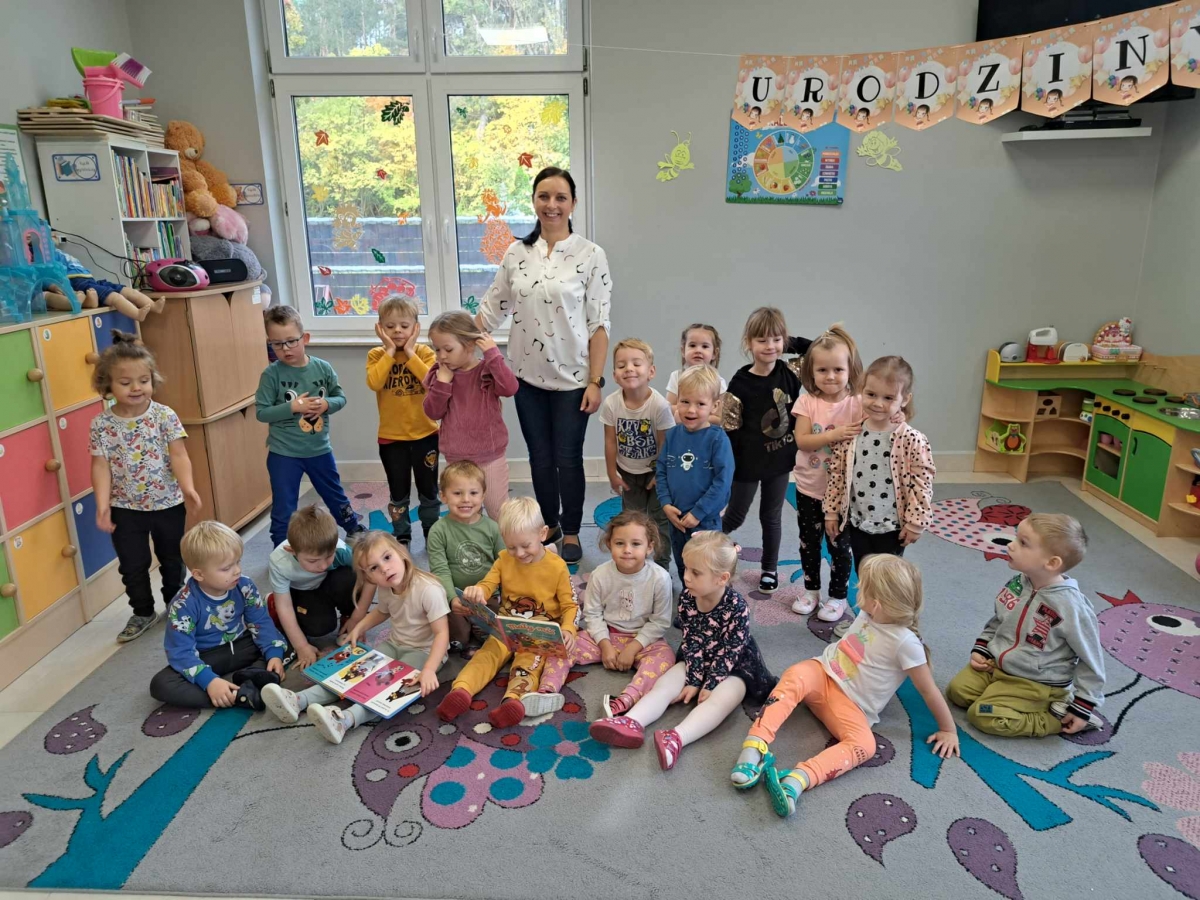 W tymże dniu spotkałam się z dziećmi z Oddziału i Punktu Przedszkolnego w Nowym Grabiu. Trzy grupy tj. „Biedronki”, „Pszczółki” i „Motyle” czekały w swych salach by poznać nowe historie w książeczkach, które im przywiozłam.