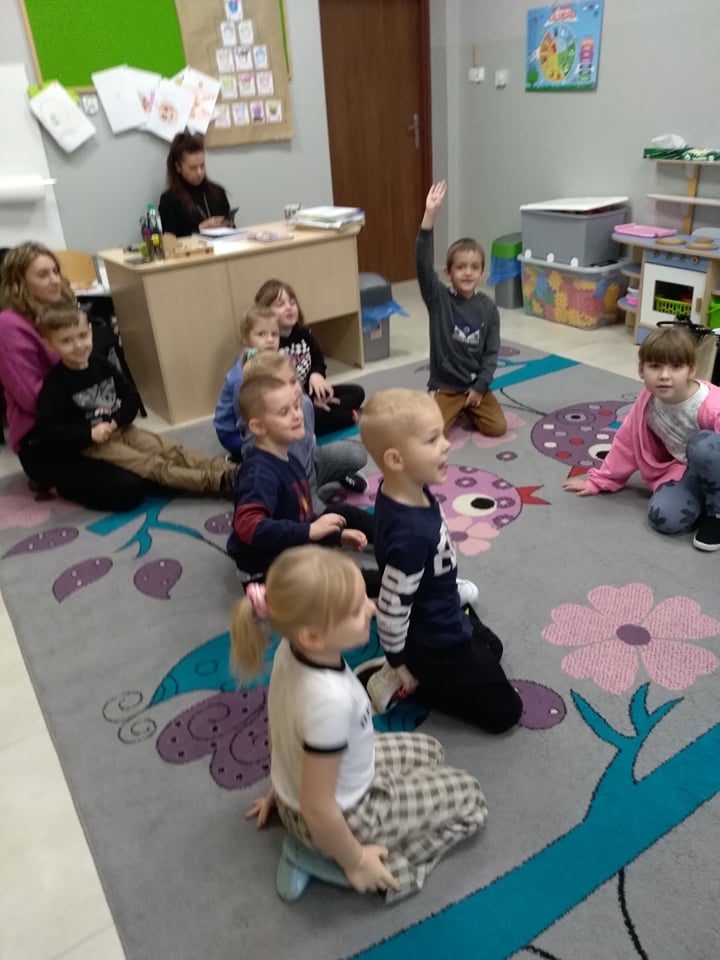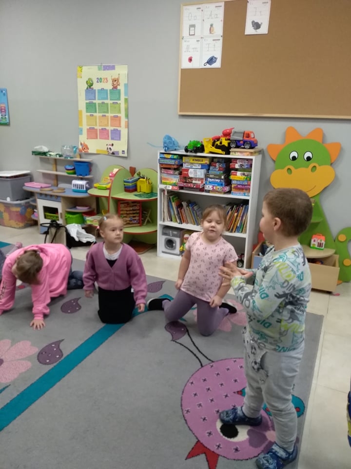 Grupa „Motyli” zaprezentowała swoje umiejętności podczas gry w „Kalambury”, którą dziś przywiozłam na spotkanie. Na kartach przygotowane miałam obrazki przedstawiające hasła z różnych kategorii a zadaniem dzieci było pokazanie ich bez użycia słów tak aby grupa odgadła.