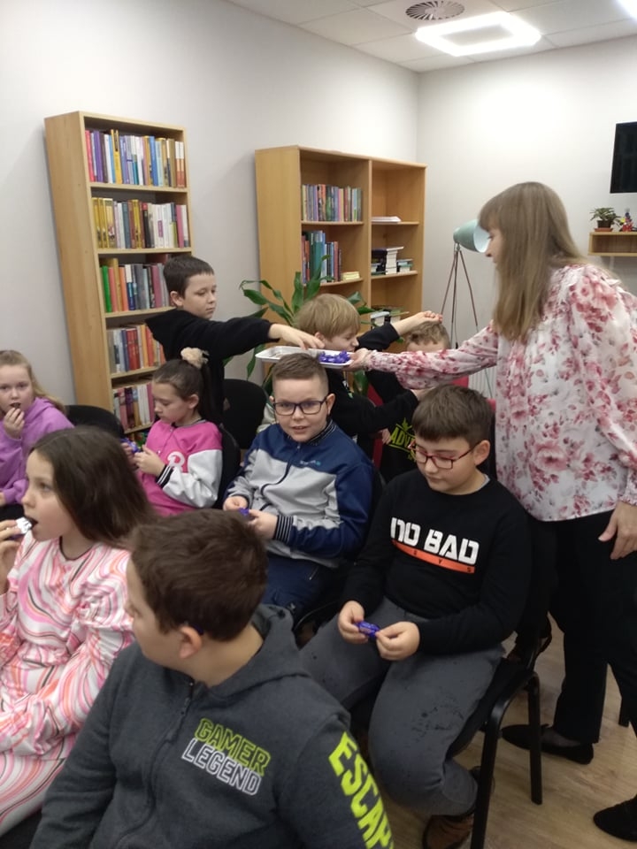 W trakcie zajęć nie mogło zabraknąć słodkiego akcentu, o który zawsze dba bibliotekarka – Pani Beata Szczesiak.