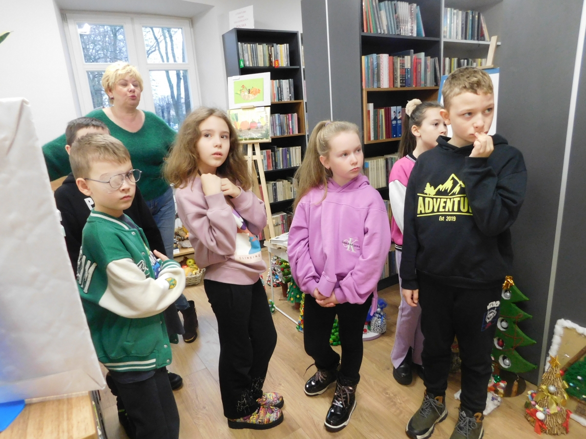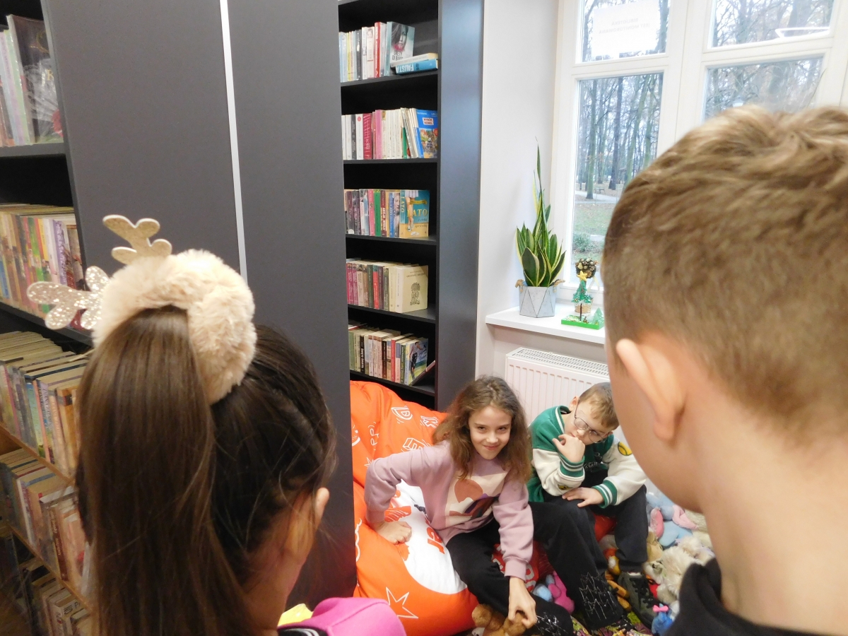 W trakcie gdy jedni zwiedzali siedzibę, z pozostałą grupą bibliotekarka Joanna Olejniczak prowadziła błyskawiczne „Kalambury”, w których uczestnicy spotkania prezentowali hasła postaci z książek lub bajek. Wspólna zabawa pokazała z jaką uzdolnioną grupą mamy do czynienia.