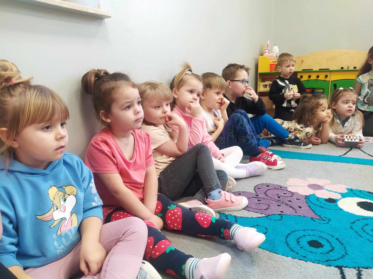 Maluchy- „Pszczółki” z zainteresowaniem wysłuchały historii o małym czerwonym traktorku w książce N. Quintart pt. „ Traktorek pomaga jelonkowi”. Zranione zwierzątko wywołało wśród najmłodszych wiele emocji. Następnie poznali kolejną przywiezioną przeze mnie książeczkę pt. „Poznaj Bluey”. Bohaterkę wszyscy rozpoznali, wysłuchali jej przygód, czekając co tym razem wymyśli zwinna i nieprzewidywalna Bluey.