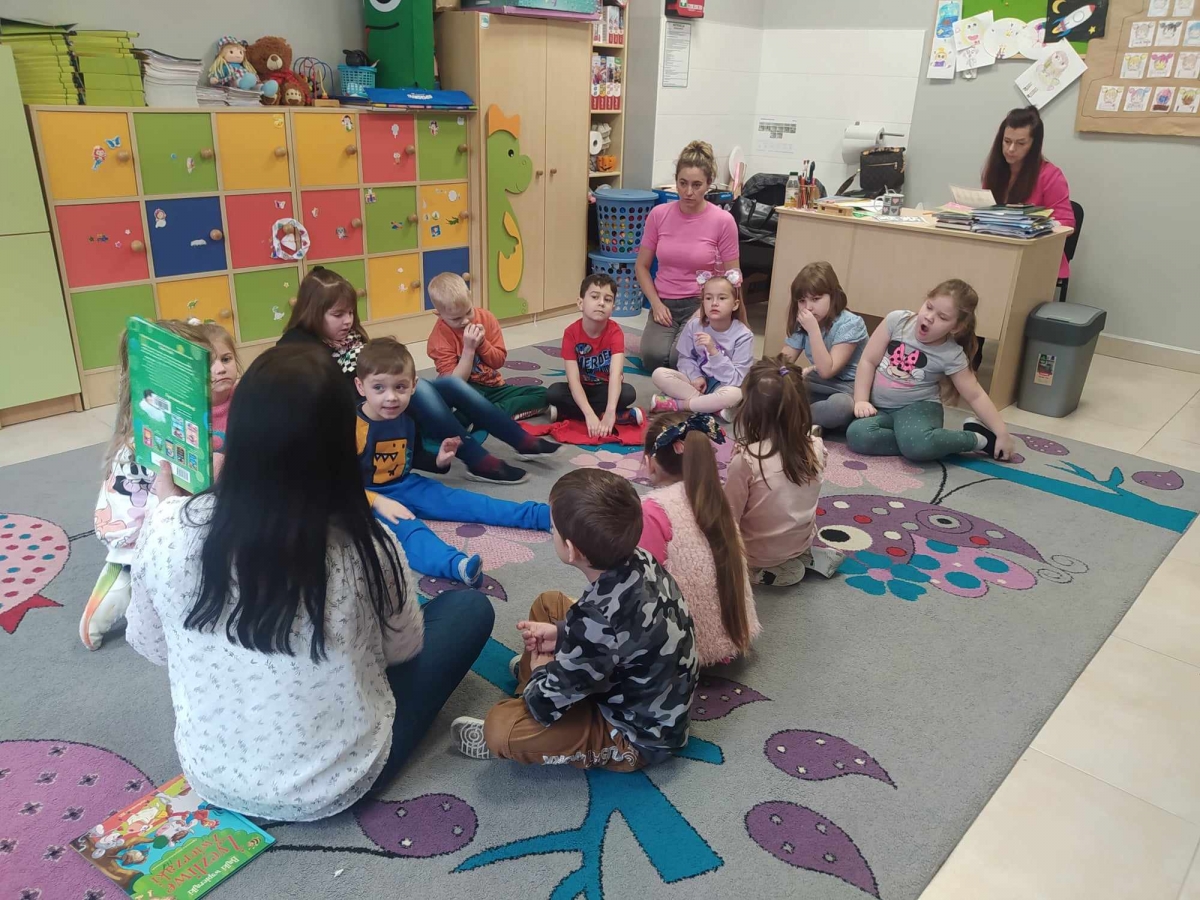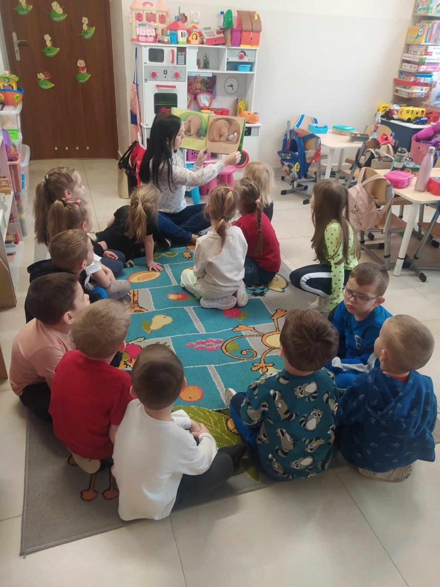 Ostatniej grupie – „Motylom” przeczytałam bajkę A. Antosiewicz pt. „ O misiu, który bał się kąpieli, czyli co się stanie , jak przestaniemy się myć” z serii Mądre bajki dobranocki. Trochę zabawna opowieść dała dzieciom do myślenia, szczególnie walka z zarazkami czy wirusami, która kończy się zwycięsko, gdy nie jesteśmy wrogiem wody.