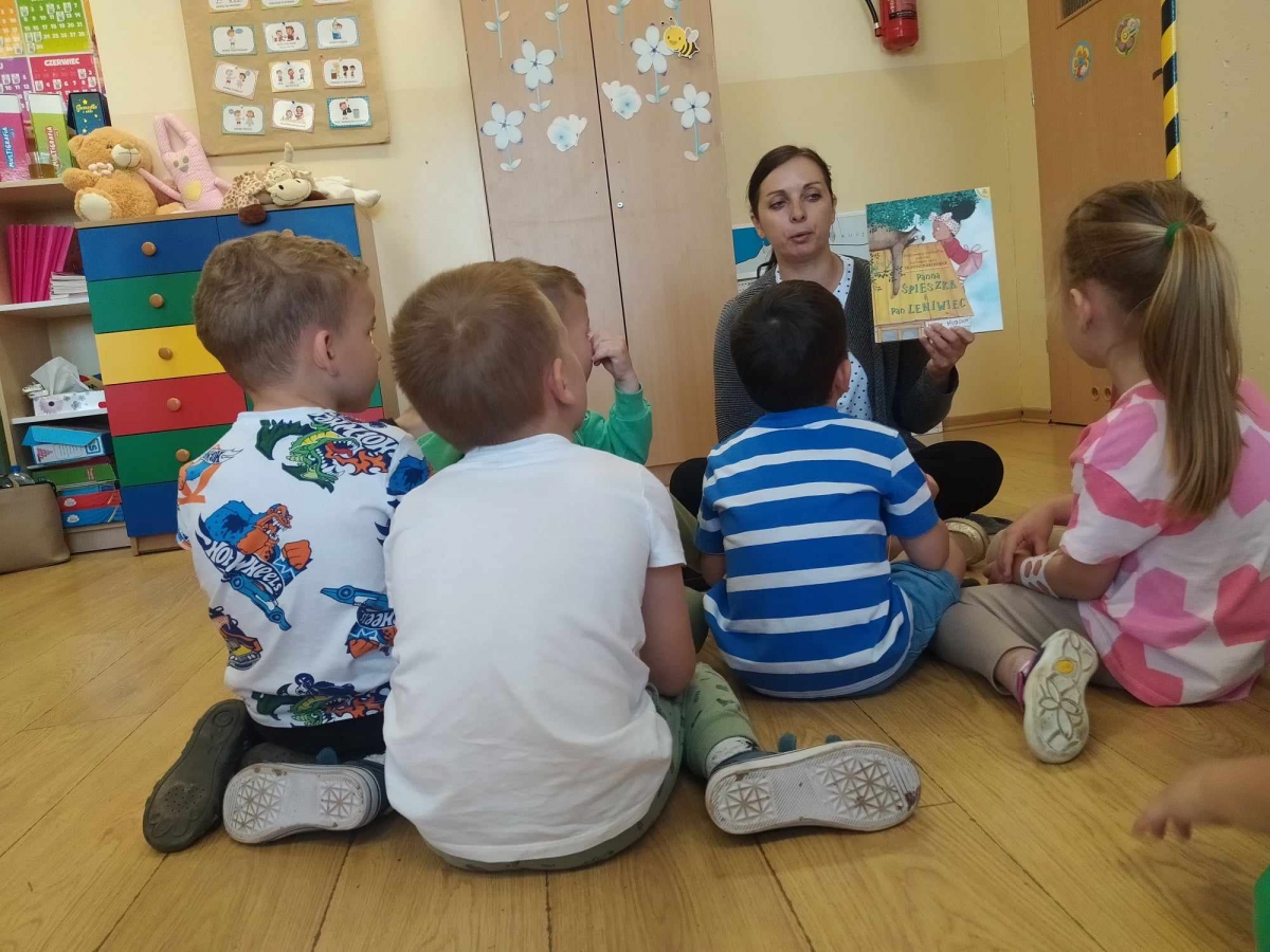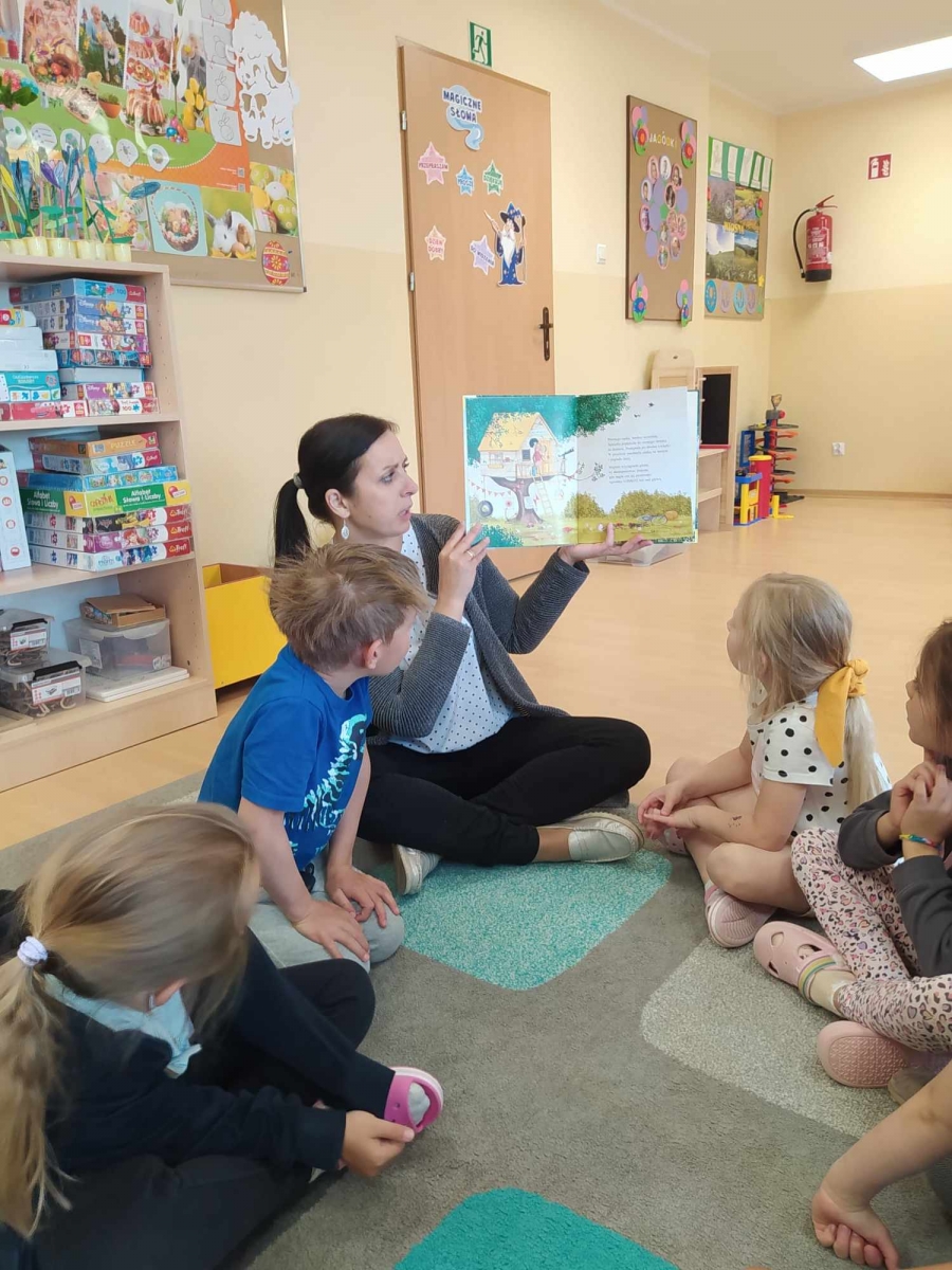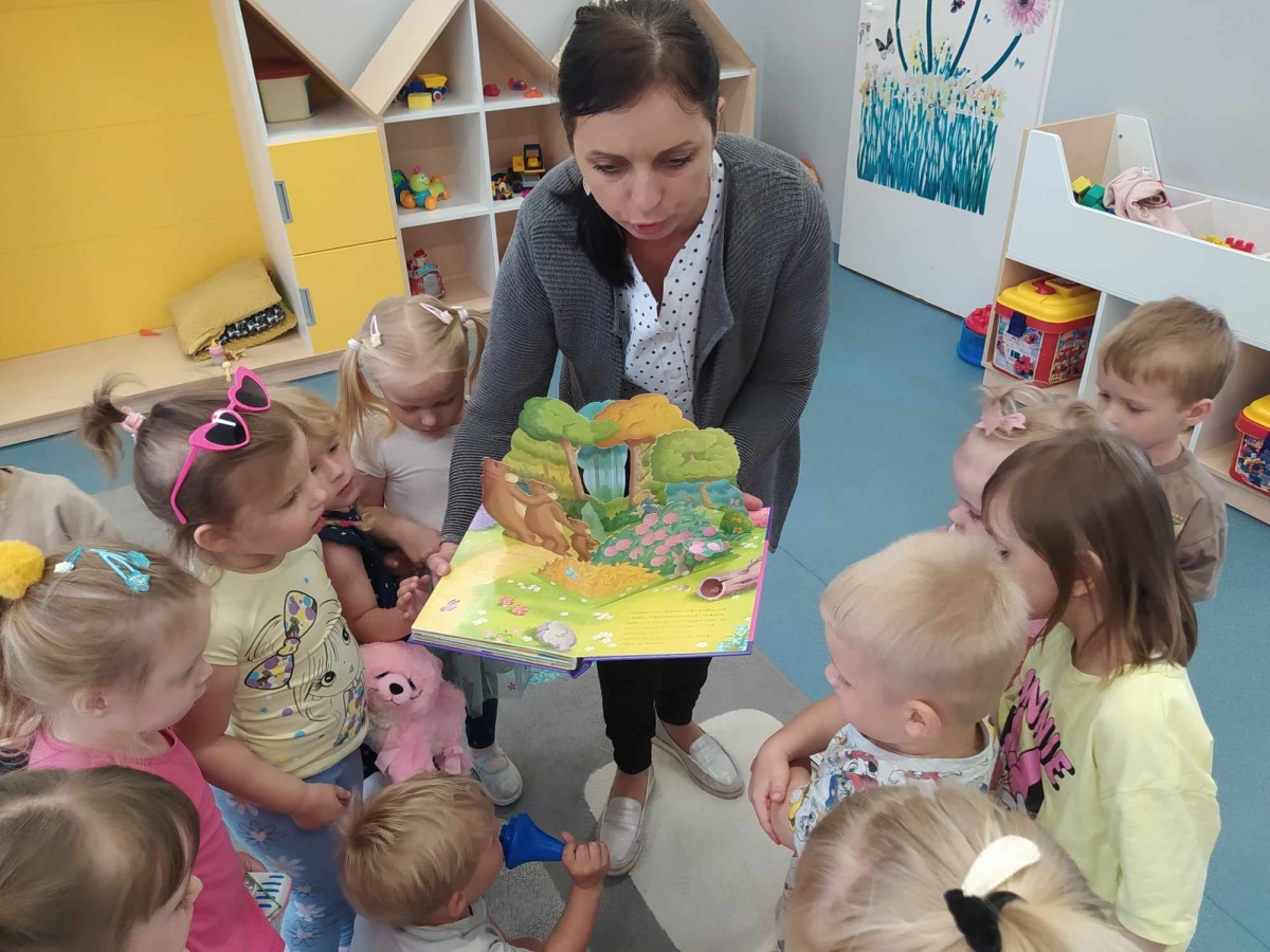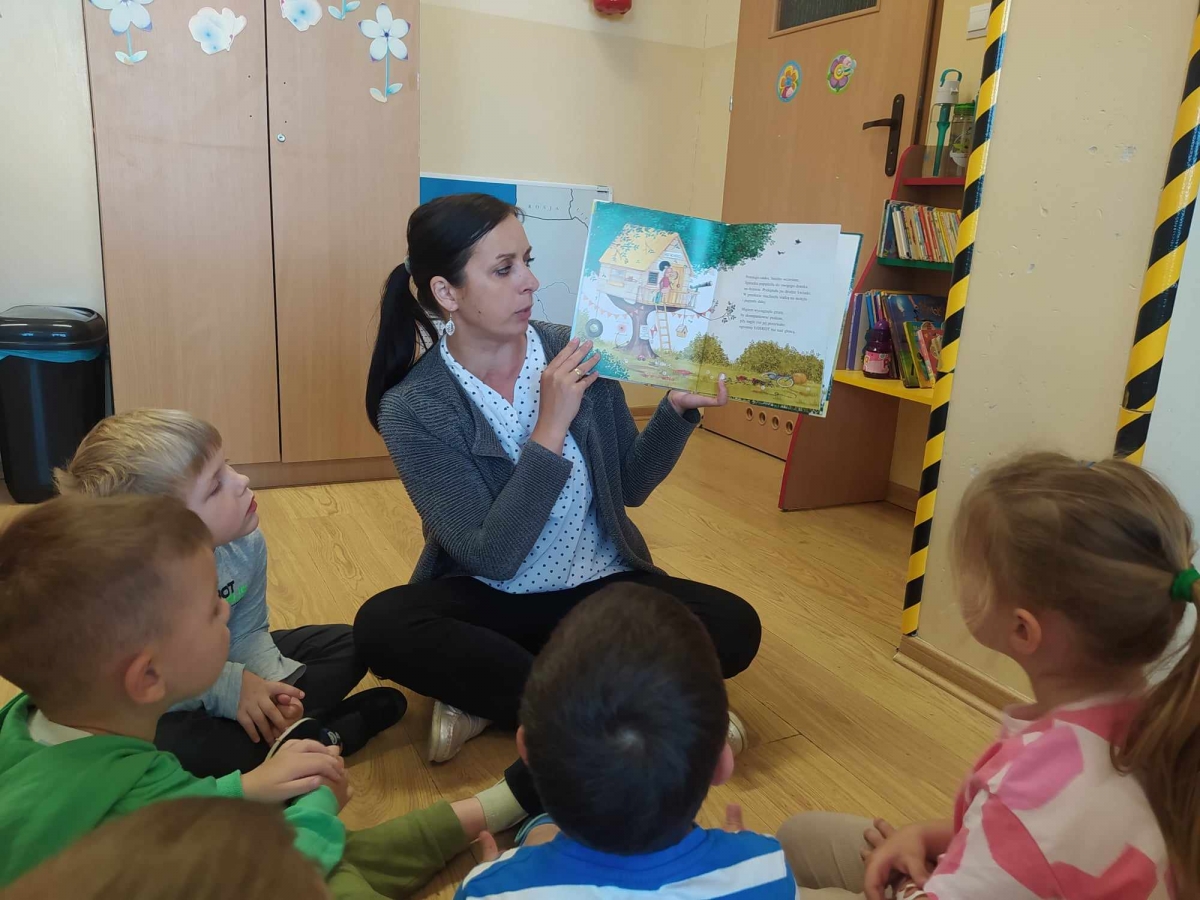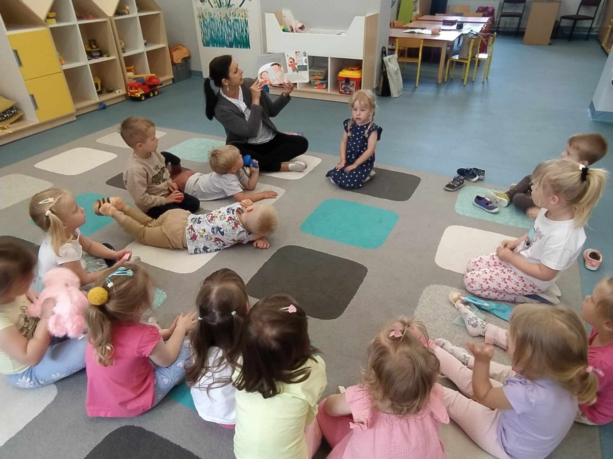 Najmłodszej z grup: „Smerfom” przeczytałam bajkę pt. „Złotowłosa”, w której to ruchome elementy książki wszyscy mogli dotknąć. Następnie zaprezentowałam dzieciom książkę M. Boćko-Mysiorskiej pt. „Tosia i Julek myją zęby”. Najmłodsi chętnie włączyli się do dyskusji opowiadając o swoich szczoteczkach i swoich przygodach związanych z porannym myciem zębów.