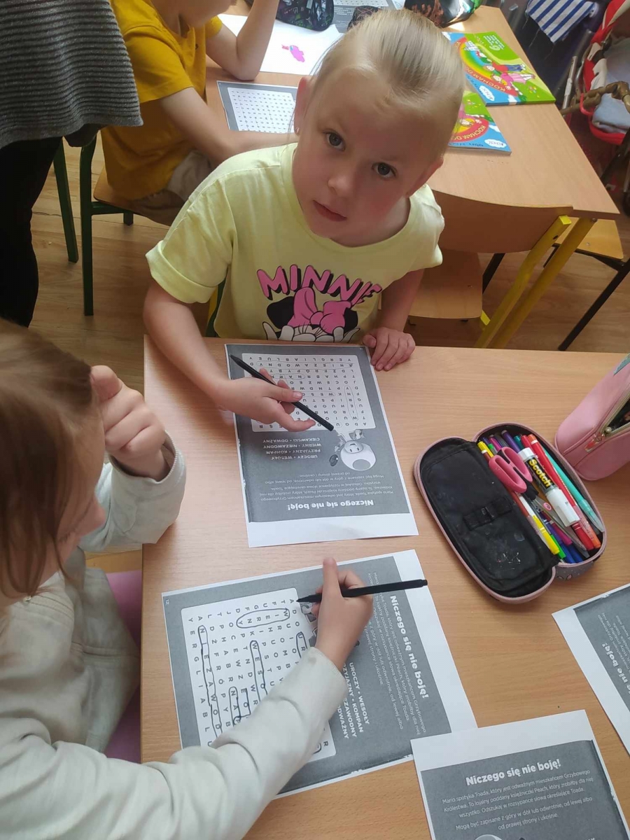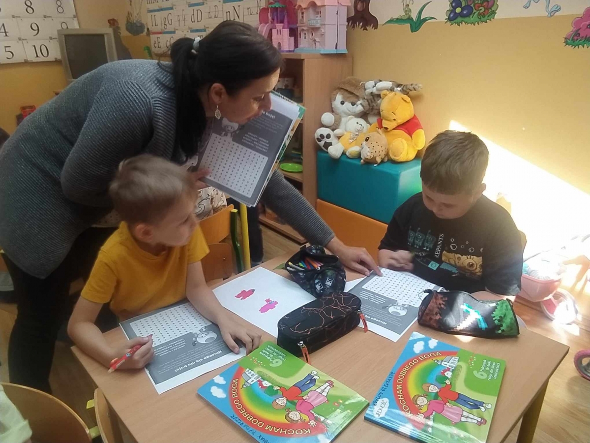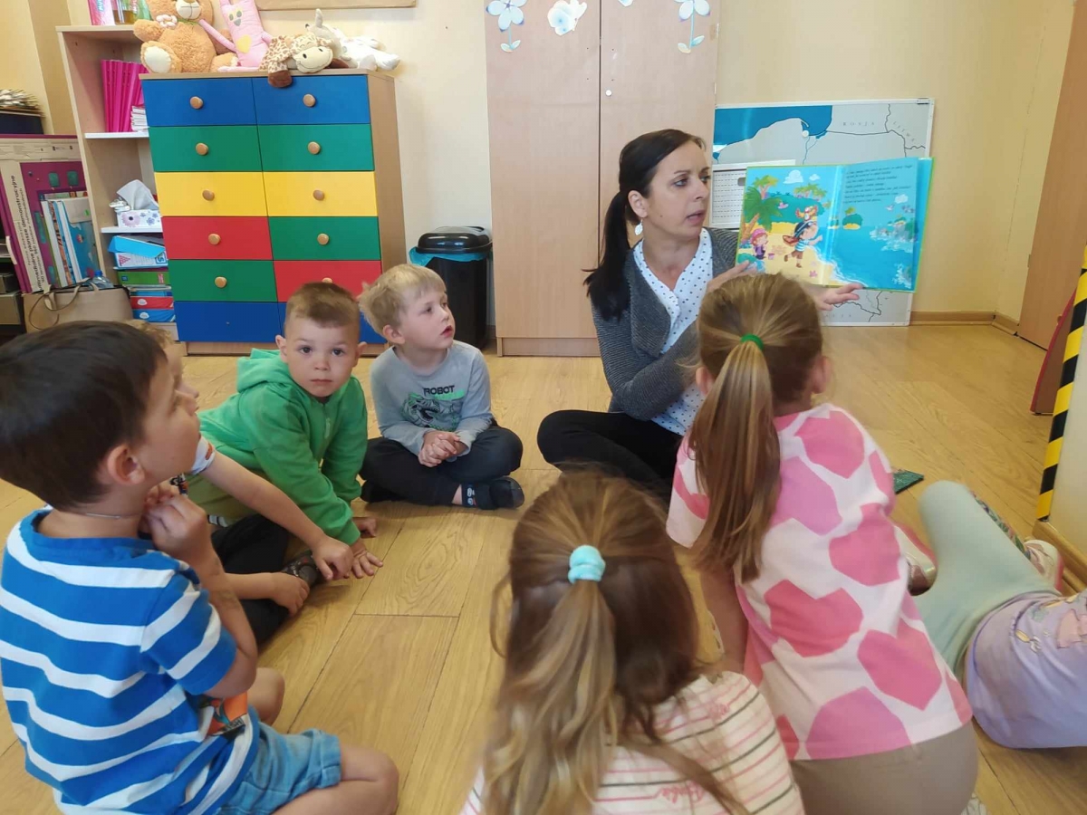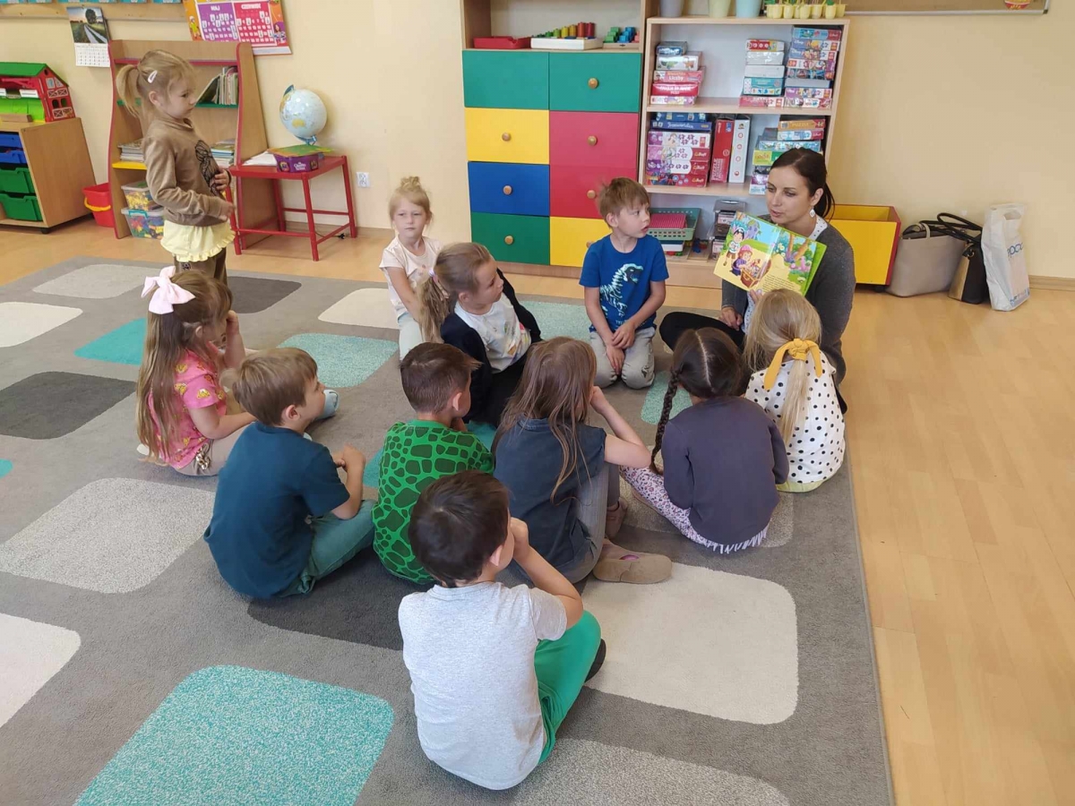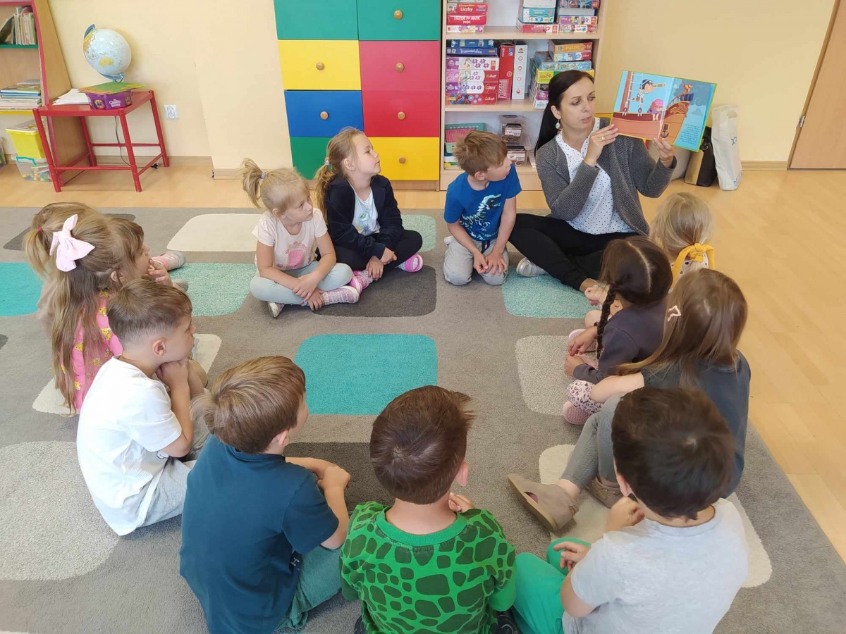 Najmłodszej z grup: „Smerfom” przeczytałam bajkę pt. „Złotowłosa”, w której to ruchome elementy książki wszyscy mogli dotknąć. Następnie zaprezentowałam dzieciom książkę M. Boćko-Mysiorskiej pt. „Tosia i Julek myją zęby”. Najmłodsi chętnie włączyli się do dyskusji opowiadając o swoich szczoteczkach i swoich przygodach związanych z porannym myciem zębów.