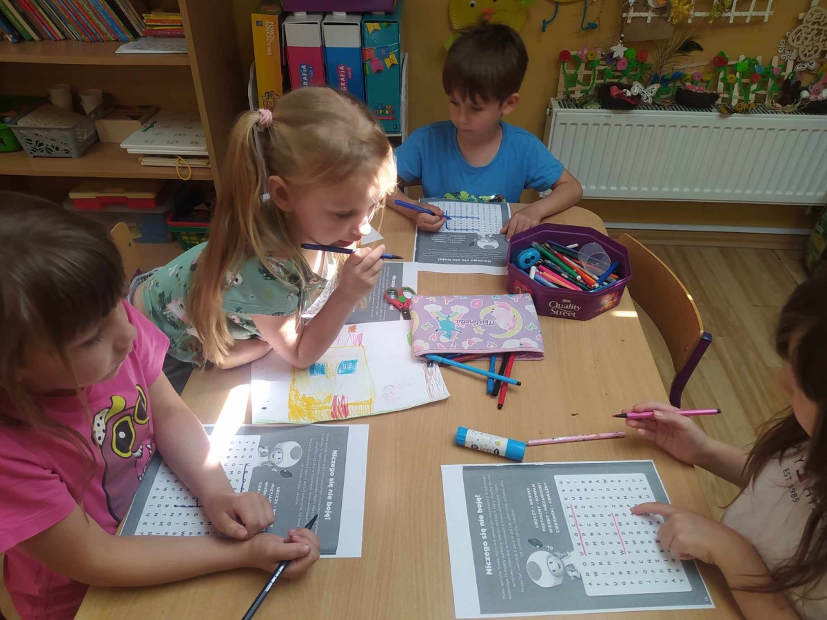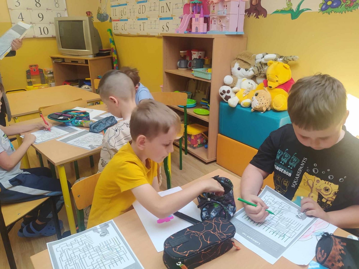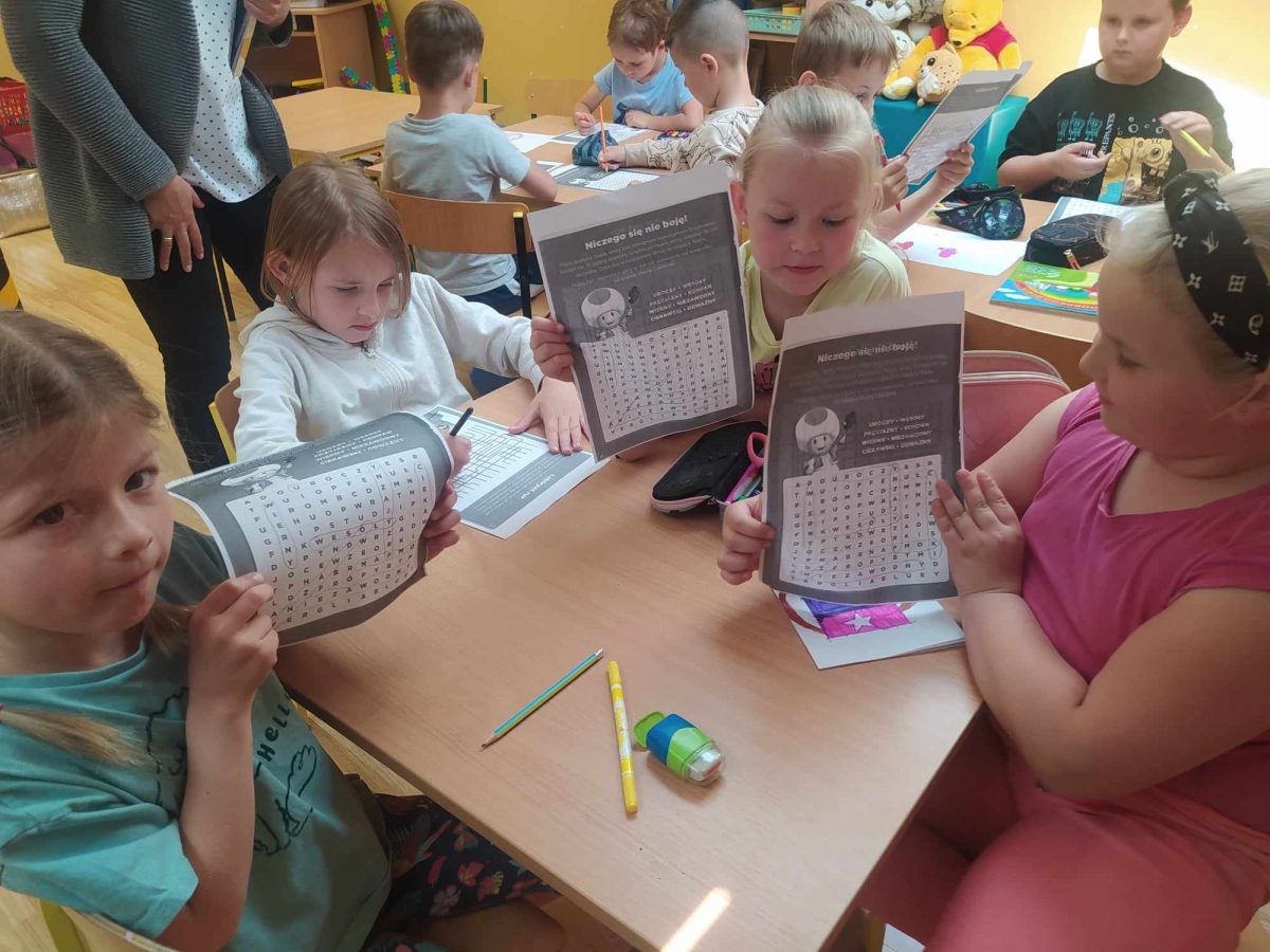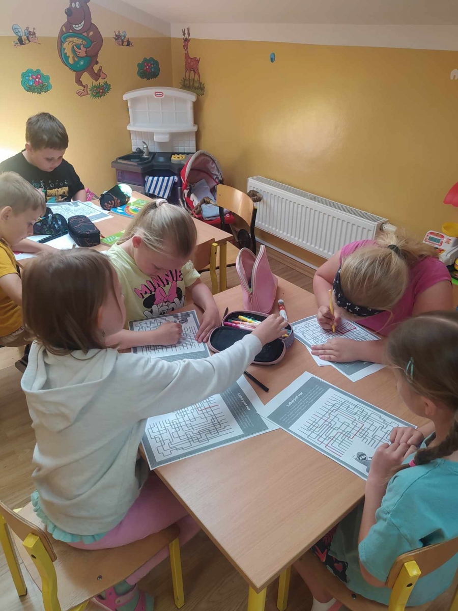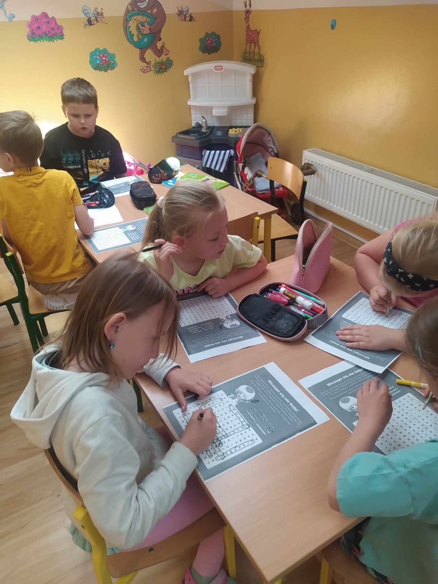 „Sowy” – najstarsza z grup swoje umiejętności zaprezentowała w rozwiązwaniu labiryntów i odszukiwaniu wybranych słów w pewnej tabeli. W zagadkach pojawiała się postać Super Mario- bohatera, którego wszyscy rozpoznali. Nie należały one do łatwych, więc „Sowy” miały trudne zadanie. Na mecie wszyskim udało się rozwiązać zadanie. Grupa świetnie pomagała sobie nawzajem, nie było rywalizacji tylko wspólna praca i zaaangażowanie.