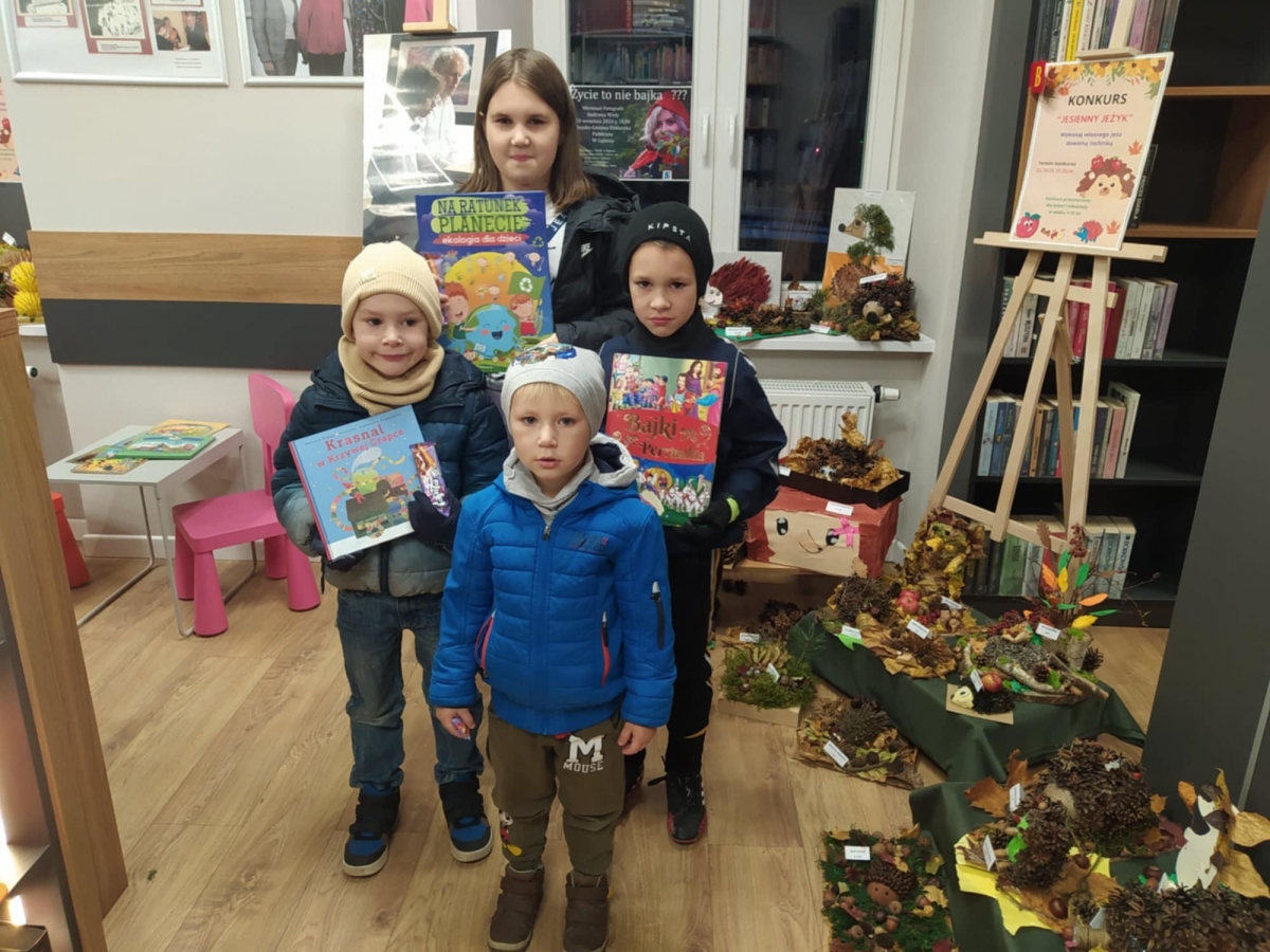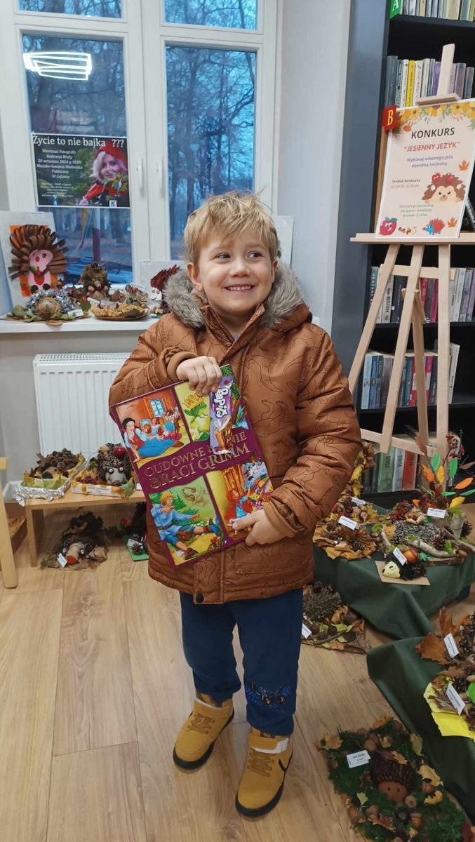 Main Uczestnicy konkursu pt. „Jesienny Jeżyk” odbierający nagrody 18 listopada, 2024 Prezentujemy wszystkich nagrodzonych w konkursie pt. „Jesienny Jeżyk” odbierających swoje nagrody. Continue Reading Previous Previous post: Pogadanka w Przedszkolu Samorządowym w Dobrzykowie (14.11) Next Next post: Uwaga! We wtorek (19 listopada) Filia Biblioteczna w Dobrzykowie będzie czynna od godz. 10.00 Dodaj komentarz Anuluj pisanie odpowiedziTwój adres e-mail nie zostanie opublikowany. Wymagane pola są oznaczone *Komentarz * Nazwa * Adres e-mail * Witryna internetowa Zapamiętaj moje dane w tej przeglądarce podczas pisania kolejnych komentarzy.