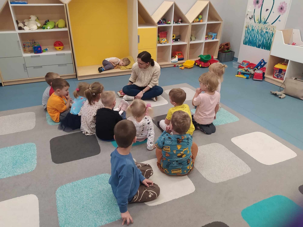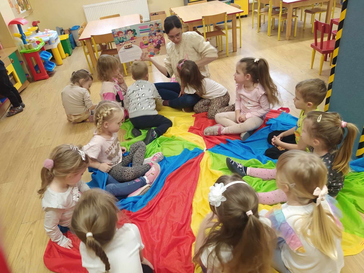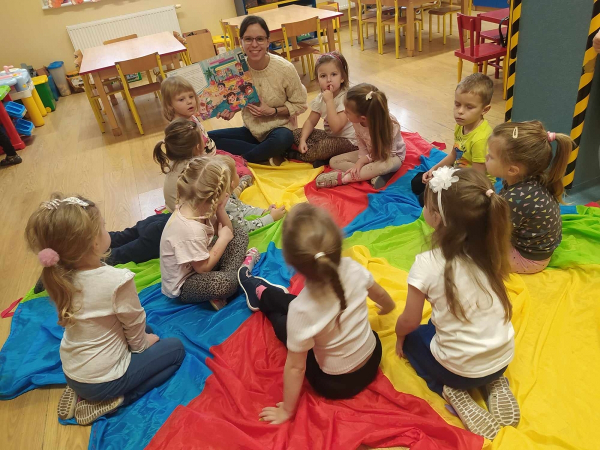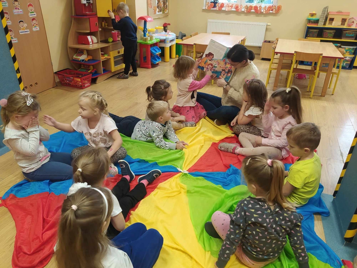 W drugiej grupie: ,,Biedronek” została przeczytana książka pt. ,,Przedszkolaki” M. Korbiel o emocjach w przedszkolu. Maluchy usłyszały m.in. historię zezłoszczonej Mai i radosnego Kacpra. Pierwsza bohaterka miała kłopot z zapięciem sobie guzika w trakcie zabawy. Była niezadowolona, ponieważ było jej bardzo trudno, ale próbowała poradzić sobie sama. Pani opiekunka powiedziała jej, że jeśli ma z czymś kłopot, to zawsze może kogoś poprosić  o pomoc  i też sama może komuś pomóc.  Po przeczytanej książce ,,Biedronki” opowiadały czy lubią wspierać innych oraz czy jeśli czegoś nie potrafią, to czy potrafią poprosić kogoś innego o pomoc. Następnie dzieci wysłuchały historii Kacpra, który razem z innymi dziećmi świętował swoje urodziny. Z tej okazji przyniósł do przedszkola wielki kolorowy tort, czym sprawił swoim kolegom i koleżankom wielką radość.