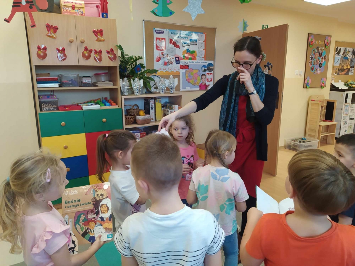 ,,Co szumią drzewa?” brzmiał tytuł opowiadania z książki pt. ,,Bajki na górskich szlakach”, które usłyszały ,,Jagódki”. W trakcie zajęć opowiadały o przyrodzie, spacerach w lesie i opiece nad chorymi zwierzętami odwiedzającymi ich domy i ogródki.