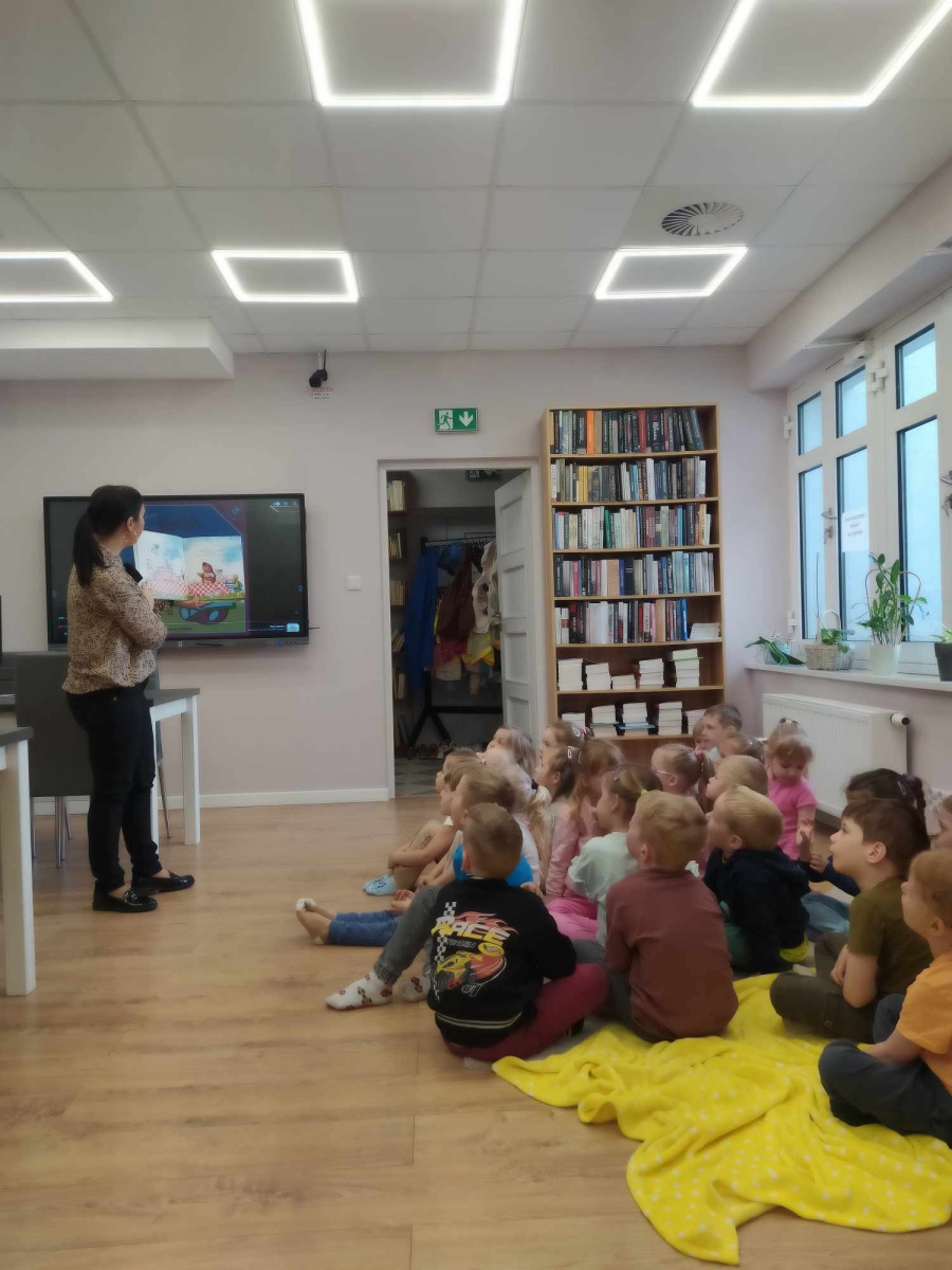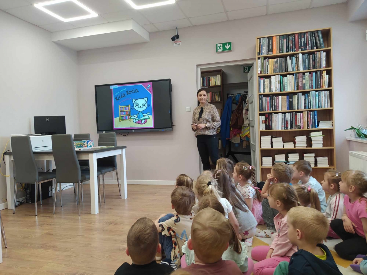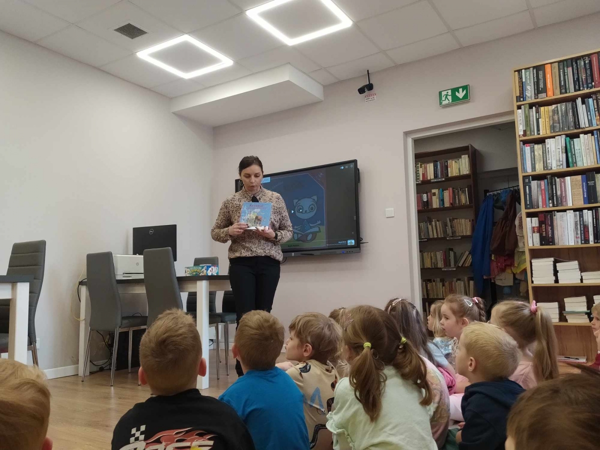 Dodatkowo Skrzaty wysłuchały audiobajki pt. ,,Kicia Kocia w bibliotece” oraz wspólnie bawiły się w obrazkową grę Kalambury Junior. Na koniec czekała na nich mała niespodzianka – słodkość, która miała dać im siłę na powrót do przedszkola.