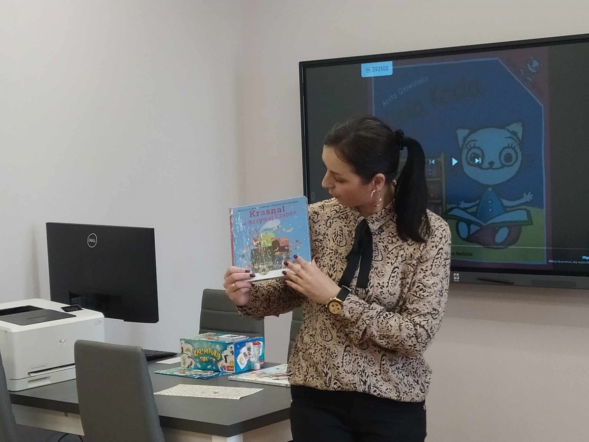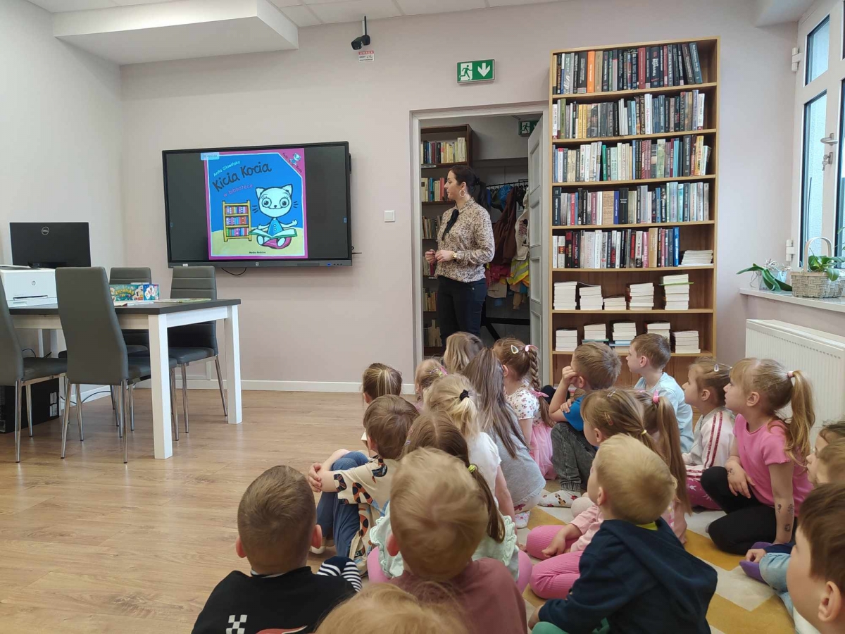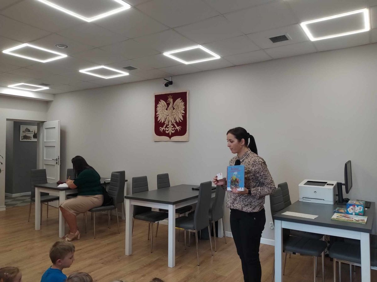 Dodatkowo Skrzaty wysłuchały audiobajki pt. ,,Kicia Kocia w bibliotece” oraz wspólnie bawiły się w obrazkową grę Kalambury Junior. Na koniec czekała na nich mała niespodzianka – słodkość, która miała dać im siłę na powrót do przedszkola.