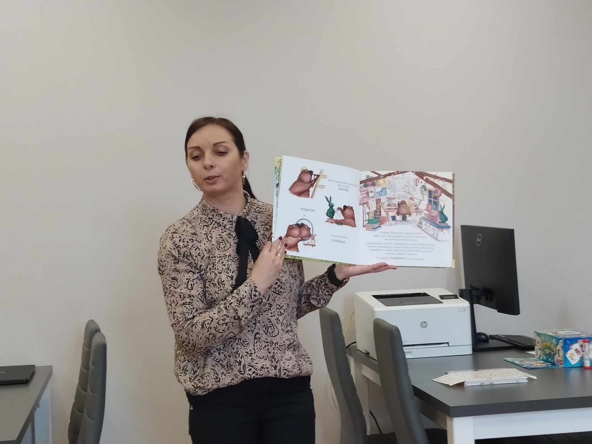 Bóbr zawsze chce być perfekcyjny! Wszystko robi starannie, uważanie i rozważanie. – powiedziała bibliotekarka Joanna, czytając fragment książki pt. ,,Za doskonały tort urodziny” Katy Hudson. Historia opowiadała przygody futrzanego bohatera, który chciał upiec tort na swoje zbliżające się urodziny. Miał na niego fantastyczny przepis i nadzieję, że przysmak wyjdzie doskonale! – brzmiała dalej opowieść. Do pomocy przy kuchennych pracach zgłosili się przyjaciele Bobra. Niestety zwierzę nie było zadowolone, ponieważ martwiło się czy jego bliscy przygotują ciasto dokładnie tak jak sobie wymarzyło.