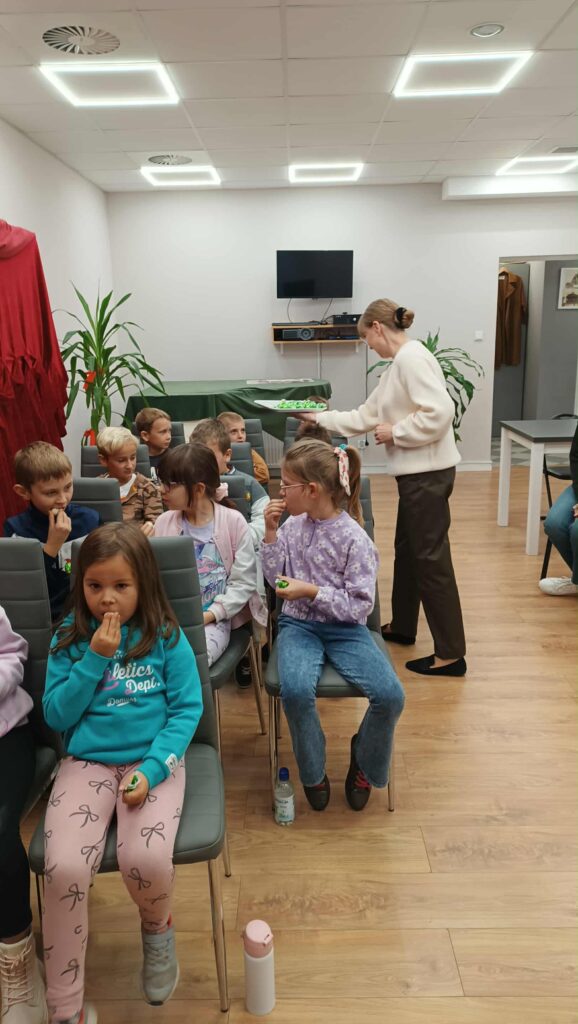 Na zakończenie bibliotekarka Asia przygotowała quiz dotyczący tytułów książek i ich bohaterów. Zagadki okazały się bardzo łatwe, dzieci bardzo chętnie uczestniczyły w rozmowie. Ta lekcja biblioteczna okazała się ogromną przyjemnością.