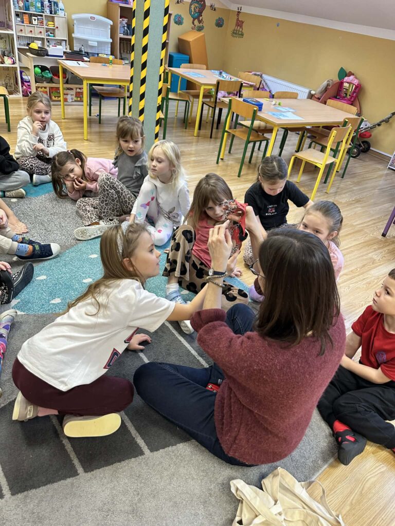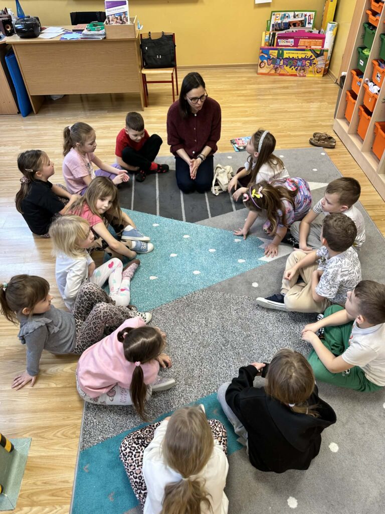 Czas ferii zimowych warto spędzić twórczo i przede wszystkim bezpiecznie. Jak to zrobić? Odpowiedzi szukaliśmy wspólnie z grupami ,,Sowy” i ,,Jagódki” z Przedszkola Samorządowego w Dobrzykowie na Pogadance 15 stycznia 2026 r.