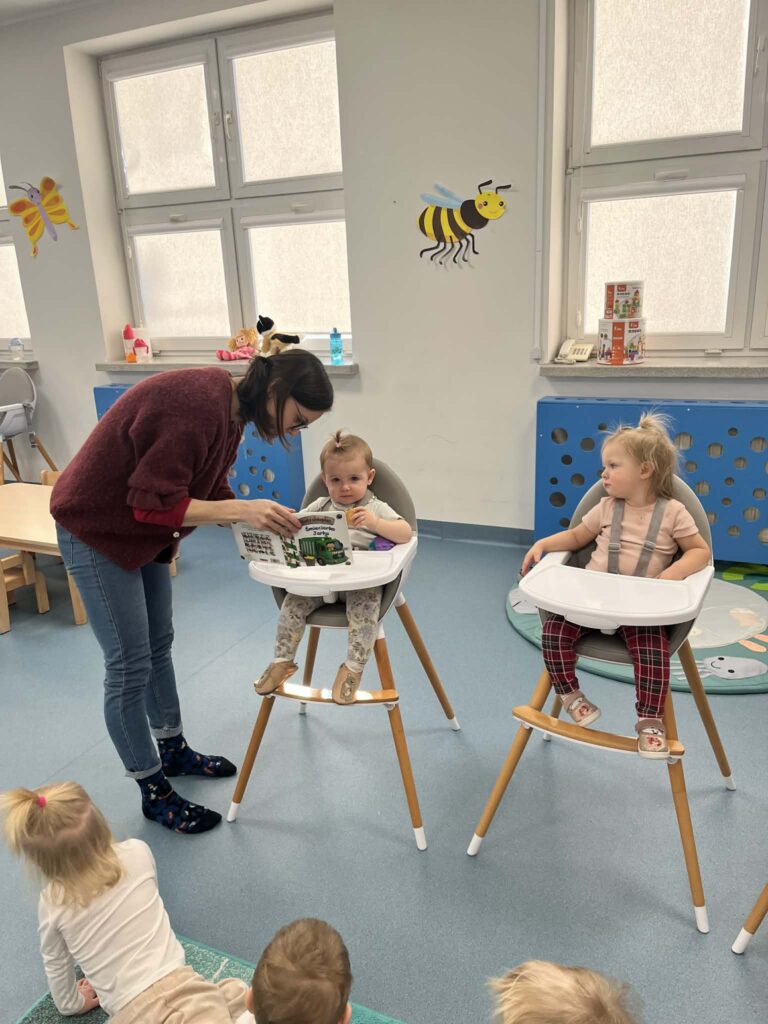 Dzisiaj, 22 stycznia miało miejsce pierwsze ,,Spotkanie z bajką” w Żłobku Samorządowym w Dobrzykowie mieszczącym się w tej samej miejscowości w budynku Szkoły Podstawowej. Jedenaścioro dzieci gościło bibliotekarkę Karolinę z sąsiadującej Filii Bibliotecznej.