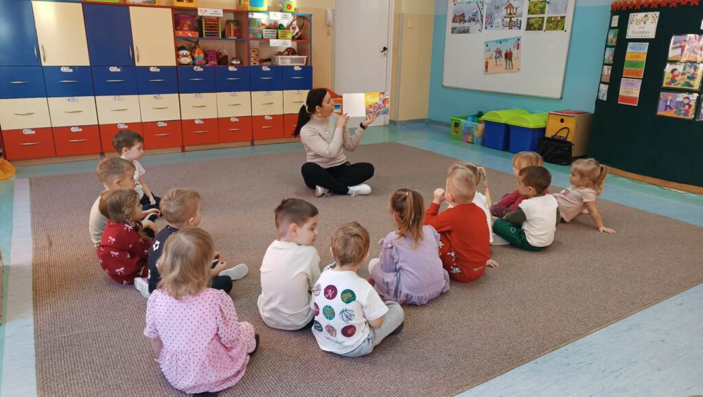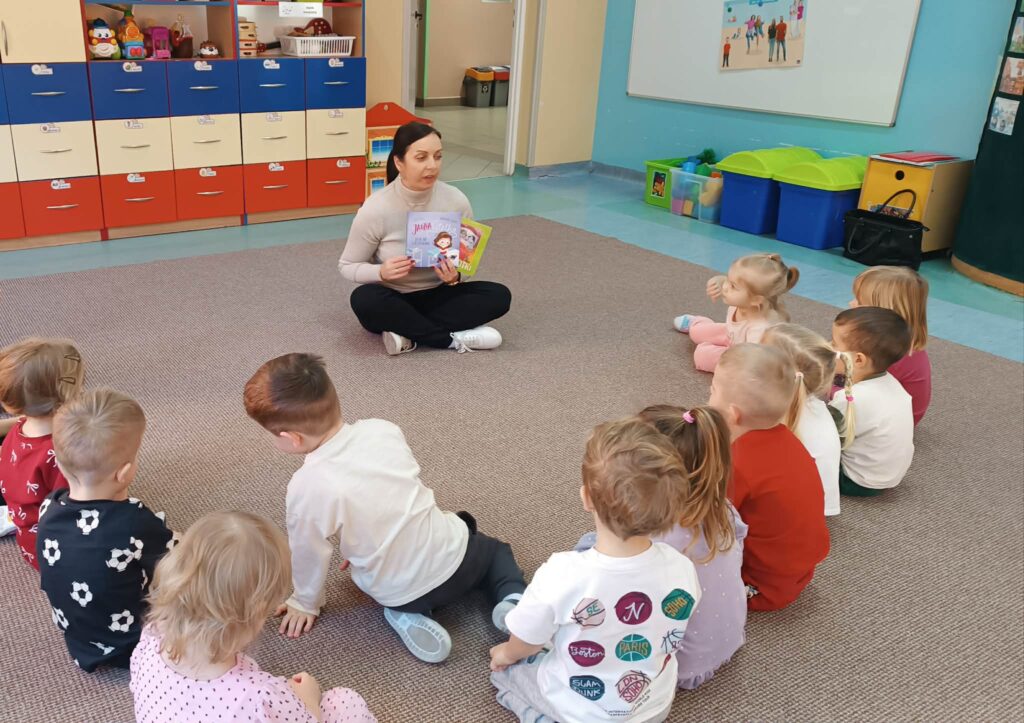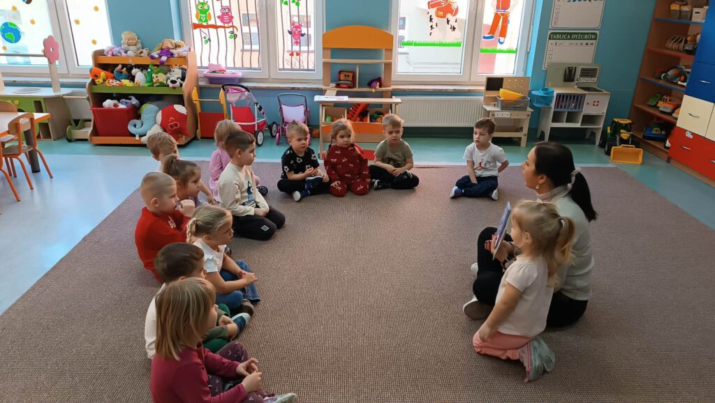 Z grupą „Jeżyków” umówiłam się na czytanie konkretnej bajki- takiej o którą mnie poprosili… pozwólcie, że na razie zostanie to słodką tajemnicą…