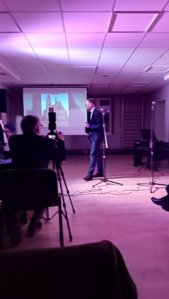 Podczas spotkania Dyrektor Miejsko-Gminnej Biblioteki Publicznej w Gąbinie pan Jarosław Domagała skierował słowa podziękowania do Burmistrza Miasta i Gminy Gabin pana Krzysztofa Jadczaka za nieustanne wsparcie oraz zaangażowanie w rozwój lokalnej kultury i ochronę dziedzictwa  historycznego. W dowód uznania pan Dyrektor wręczył panu Burmistrzowi okolicznościową statuetkę, będącą symbolicznym wyrazem wdzięczności za współpracę i życzliwość wobec wszelakich inicjatyw.