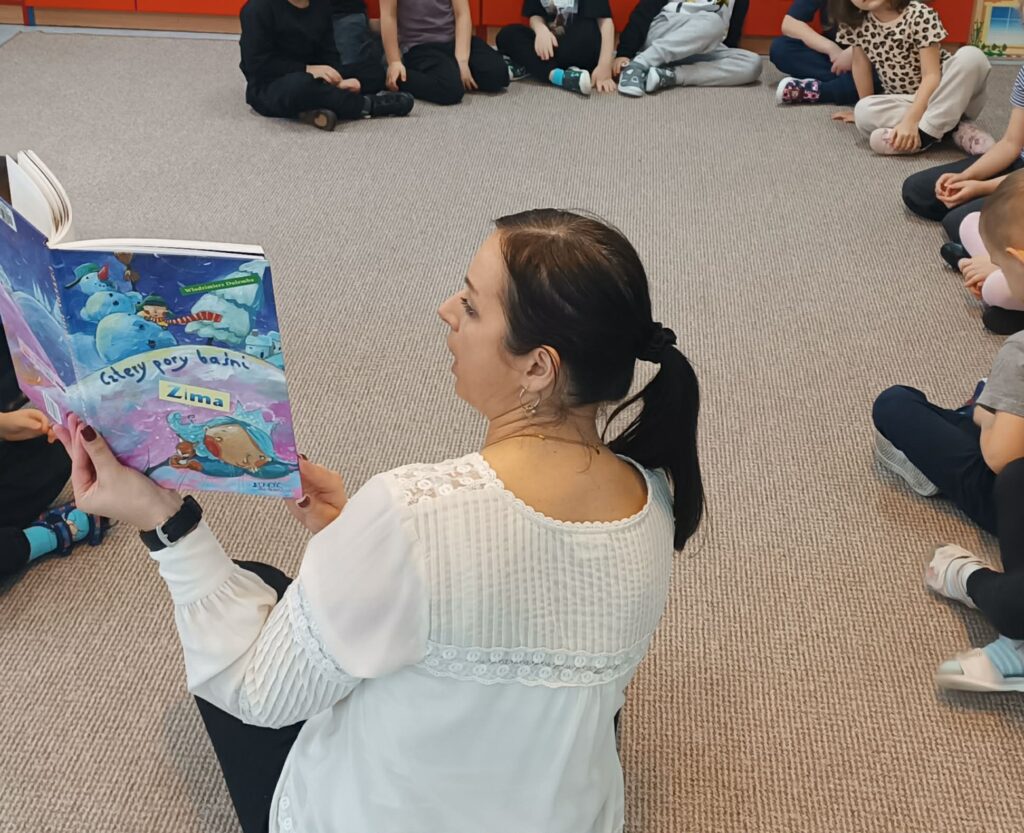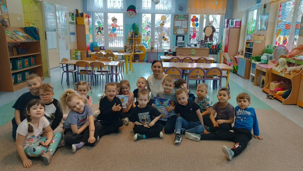 Z grupą „Motylków” porozmawiałam na bardzo wdzięczny temat- nasi kochani Dziadkowie. Wizytę rozpoczęłam od przeczytania pięknej, wzruszającej opowieści o dziadkach, którzy z wielką miłością opiekują się swoimi wnukami. Była to książka A. Widzowskiej pt. „Babcia i dziadek dają radę!”. Dzieci z dużym zainteresowaniem wysłuchały historii, a następnie chętnie opowiadały o swoich babciach i dziadkach. Wspólnie doszliśmy do wniosku, że Dzidkowie są skarbnicą wiedzy i ogromnej miłości. Podczas spotkanie „Motylki” dowiedziały się również jak ważny jest szacunek, pomoc i pamięć o seniorach. Rozmawialiśmy o tym, w jaki sposób możemy okazywać babci i dziadkowi wdzięczność- poprzez mocny przytulak, ciepłe słowo czy wspólnie spędzony czas.
