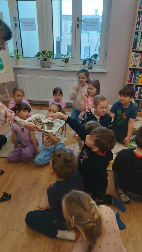 Ostatnim elementem dzisiejszych zajęć była zabawa w zagadki dotyczące bohaterów znanych książek dla dzieci. Był to moment pełen śmiechu i pozytywnych emocji- dzieci z dużym zaangażowaniem odgadywały postacie. Wszyscy opuścili bibliotekę z uśmiechami na twarzach, bogatsi o nowe doświadczenia i co najważniejsze- mam nadzieję- z większą motywacją do czytania i odwiedzania biblioteki w niedalekiej przyszłości.